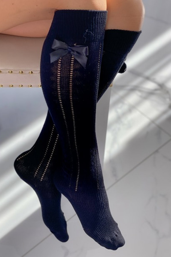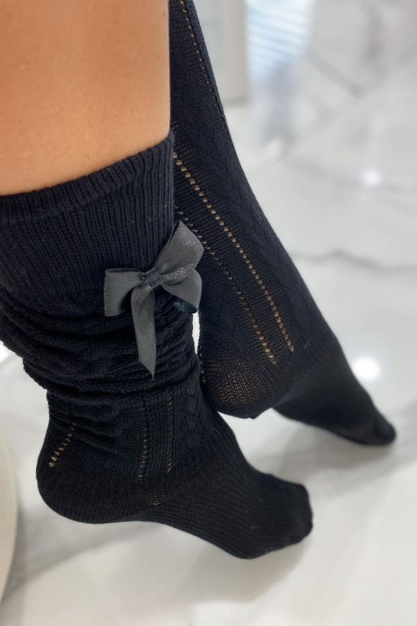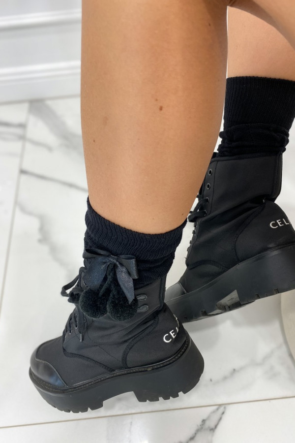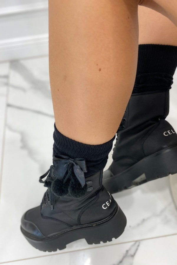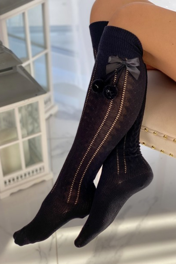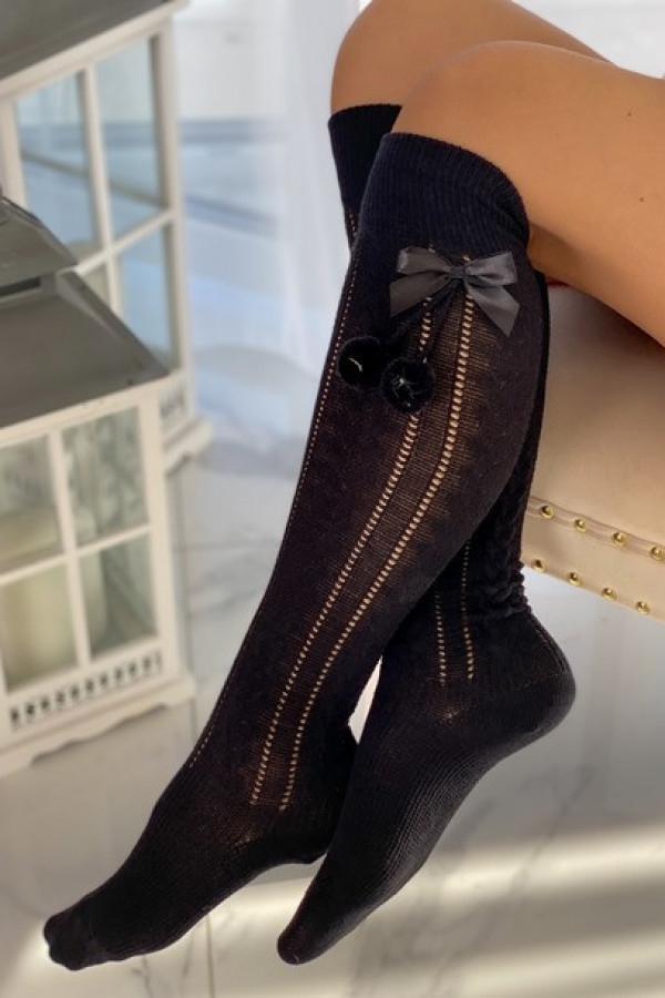 Czarne zakolanówki z pomponem i kokardą Marta 150