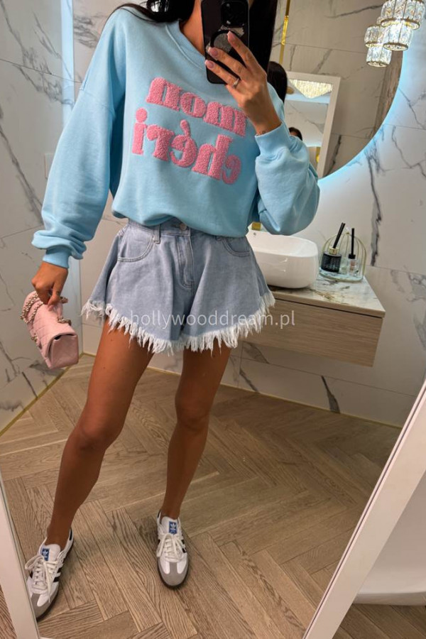 - Modne jeansowe szorty damskie jasny jeans