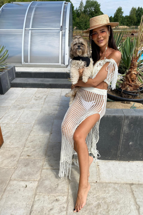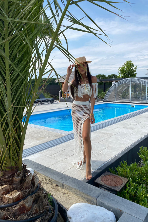 Komplet plażowy top i spódnica pleciony kremowy Aris 89