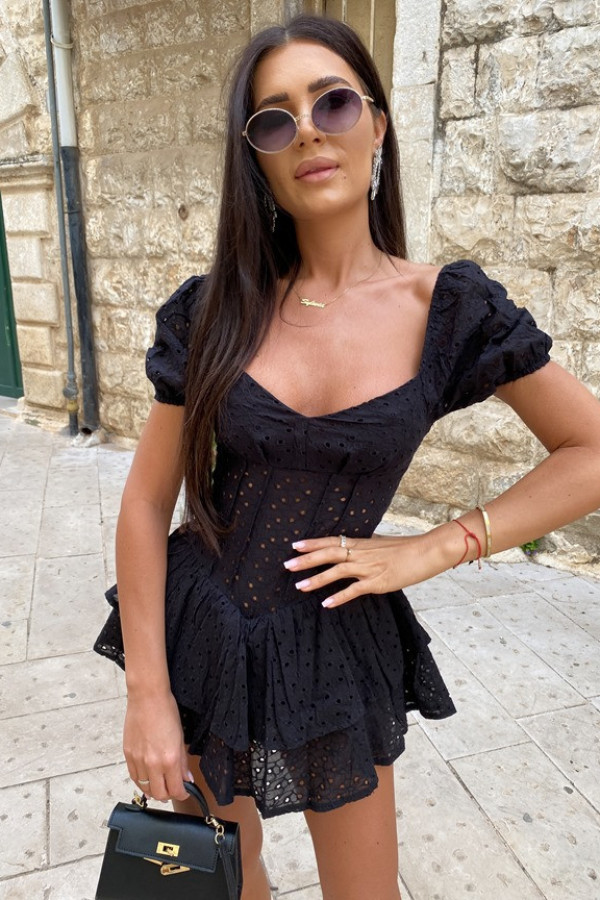 Kombinezon ażurowy z dekoltem w serce na krótki rękaw czarny Midena 89