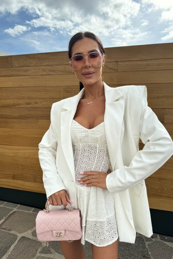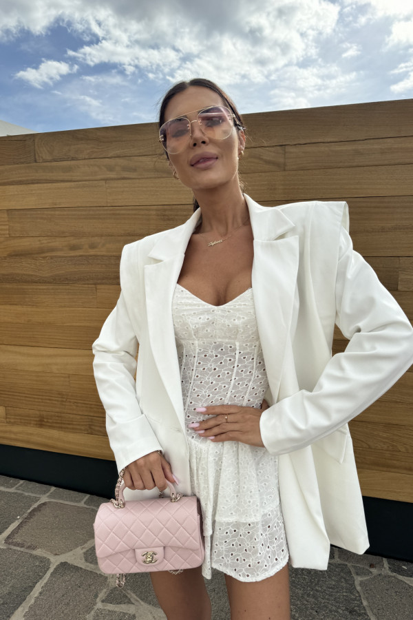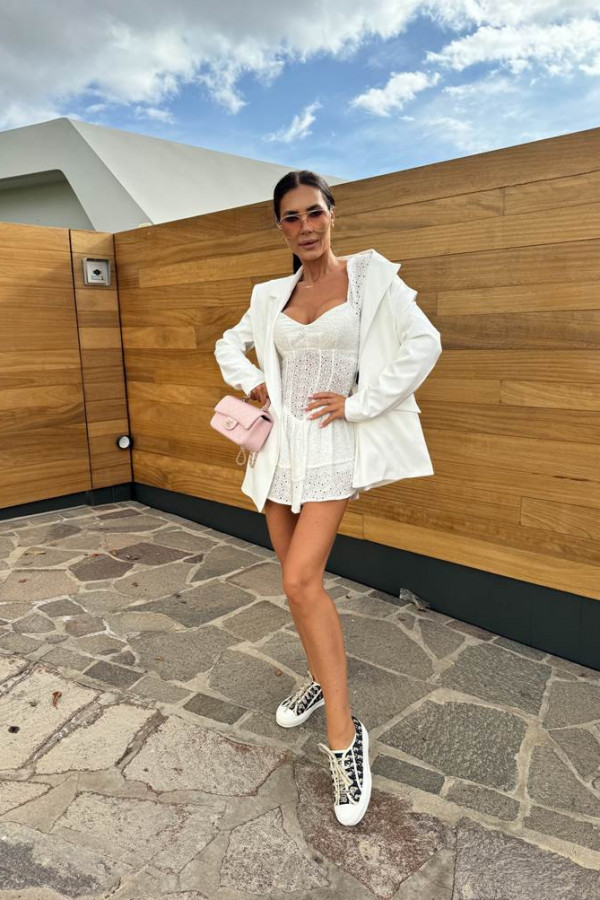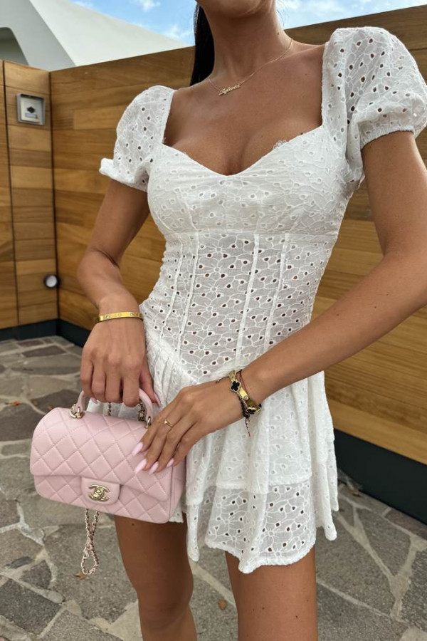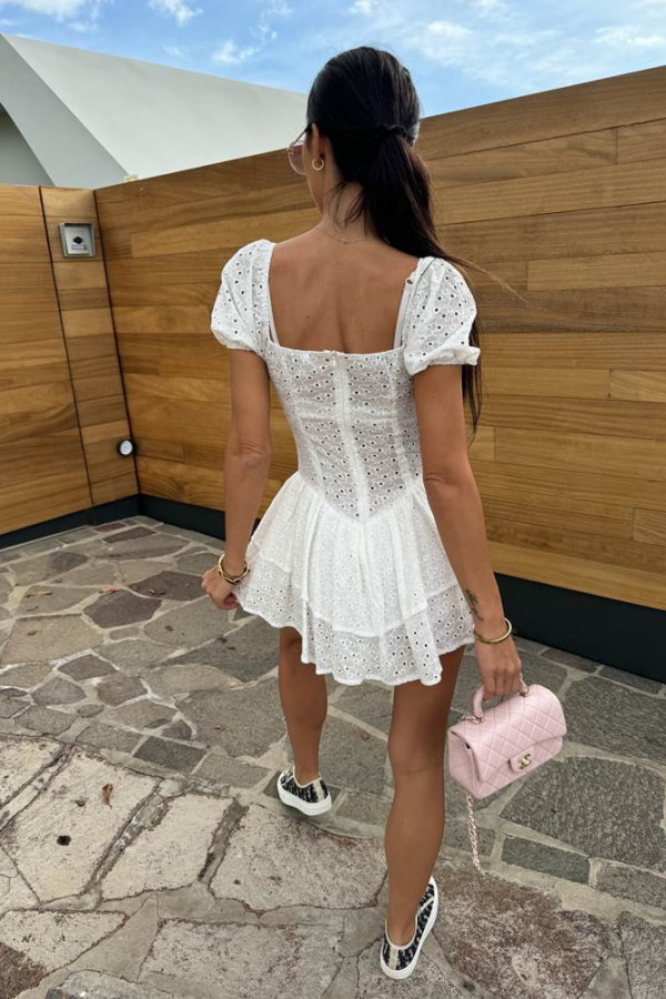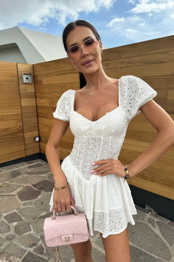 Kombinezon ażurowy z dekoltem w serce na krótki rękaw biały Midena 89