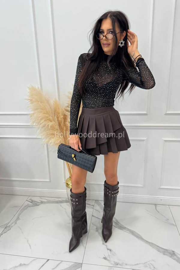 Body Mines to efektowny model wykonany z siateczki, zdobiony mieniącymi się cekinami, który doda blasku każdej stylizacji. Posiada długi rękaw, prześwitującą strukturę oraz elegancki golf, idealny na wieczorne wyjścia i wyjątkowe okazje. Doskonale komponuje się z wysokim stanem spódnic czy spodni, podkreślając sylwetkę w zmysłowy sposób.