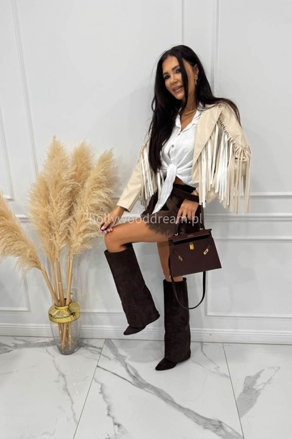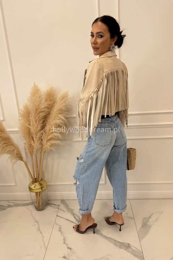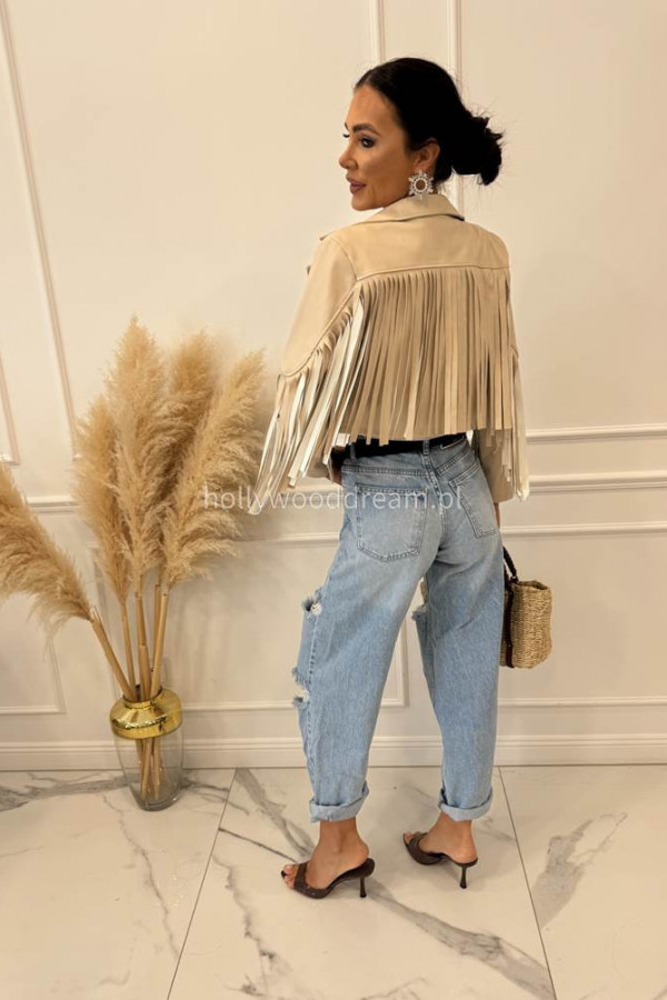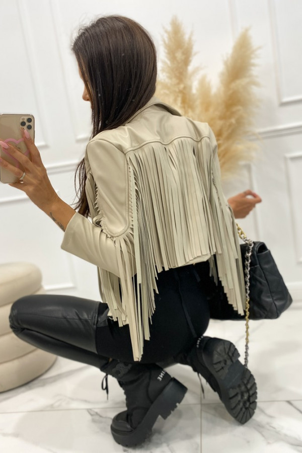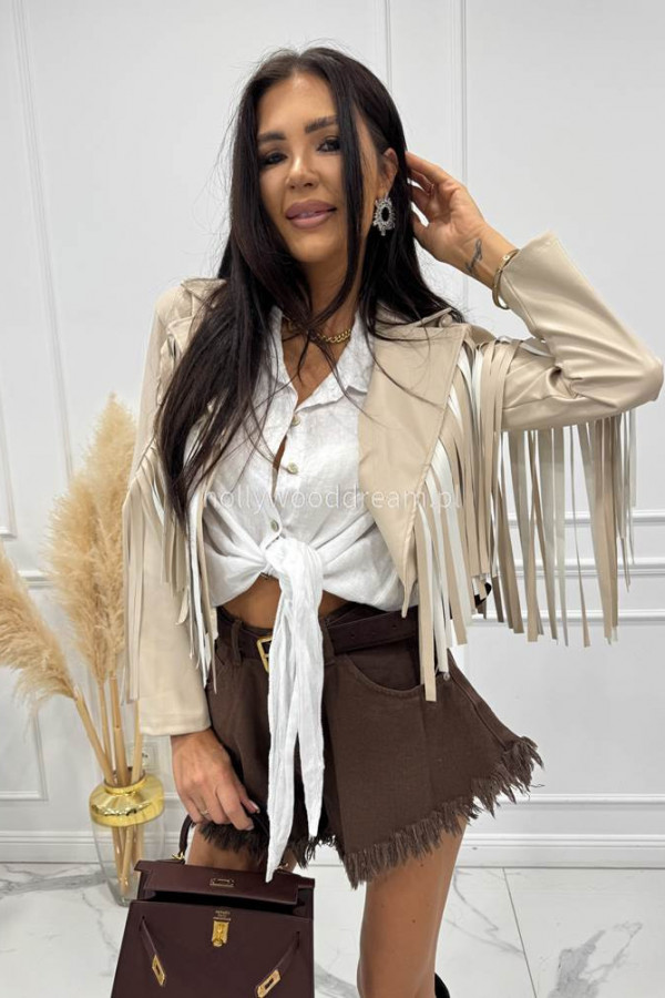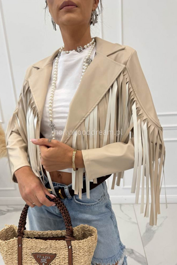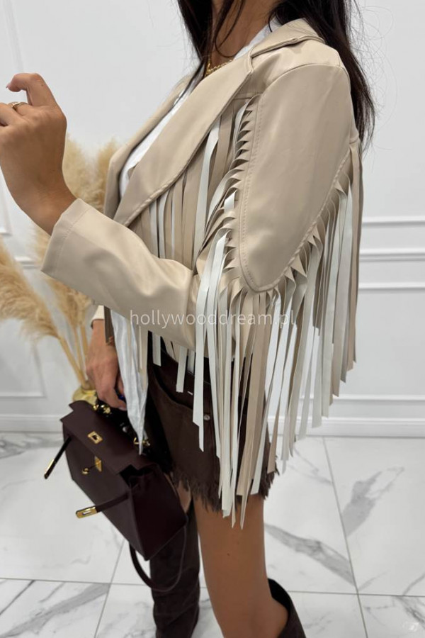 Kurtka skórzana z frędzlami beżowa Franja 19,17,06