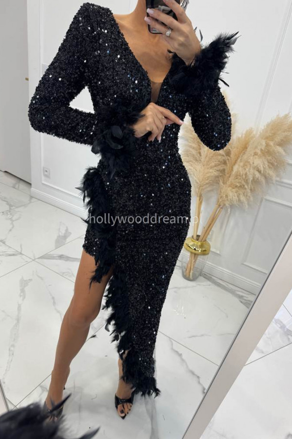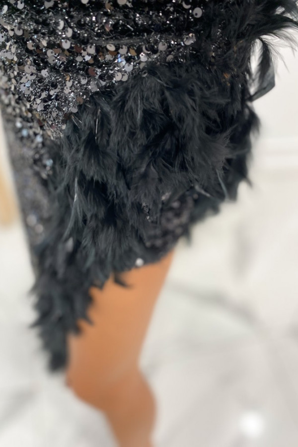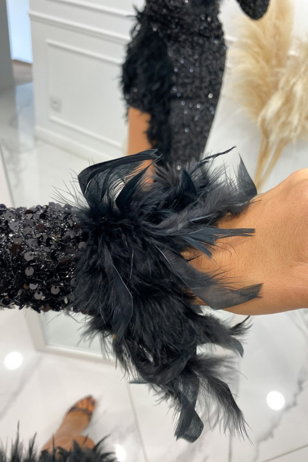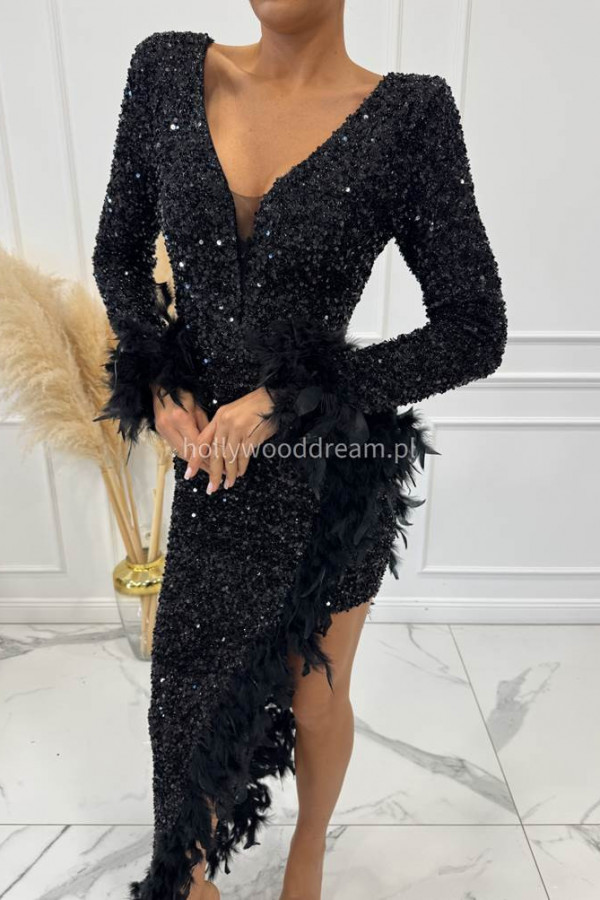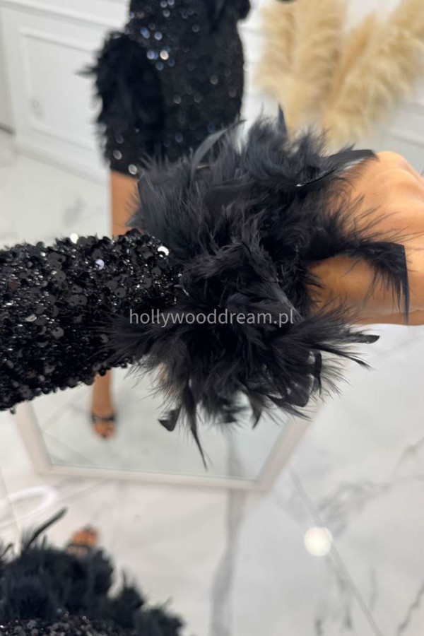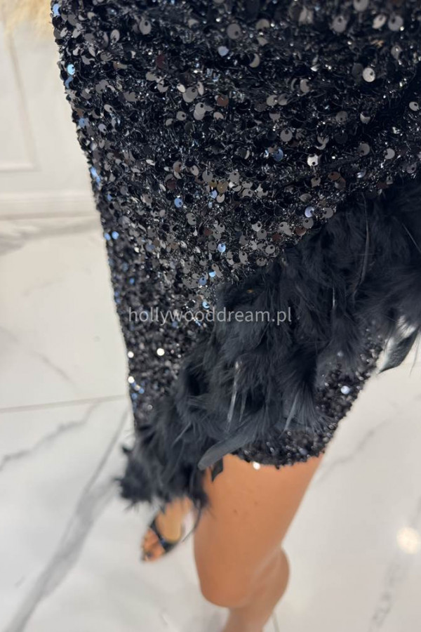 Czarna sukienka asymetryczna cekinowa z piórami Amanda 24