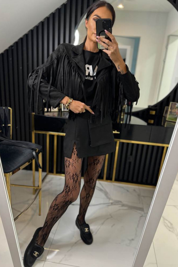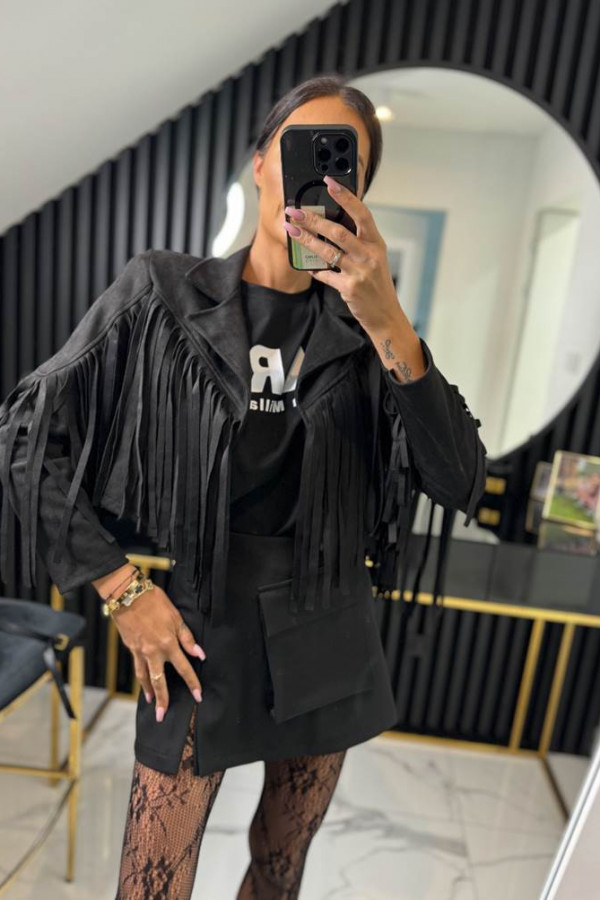 Kurtka zamszowa z frędzlami FRANJA czarna 19,02