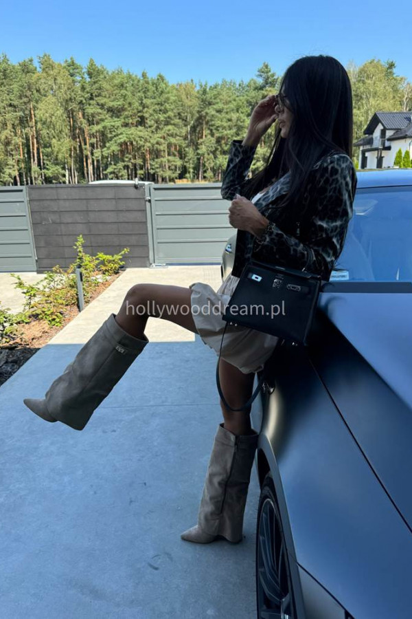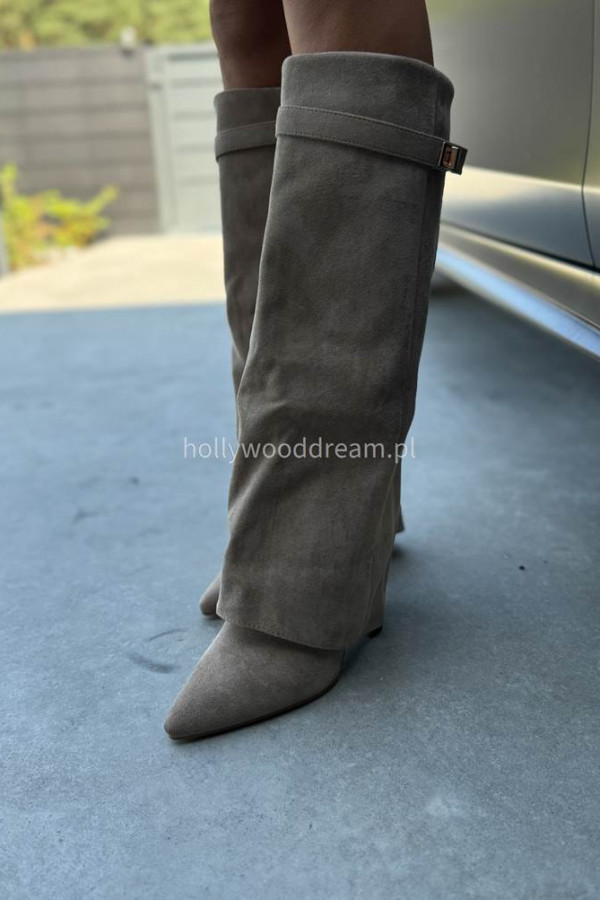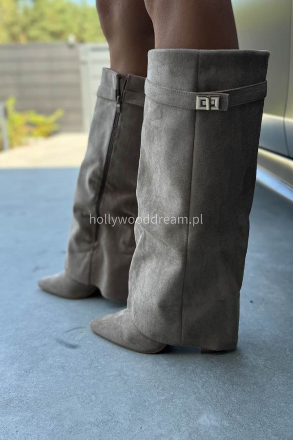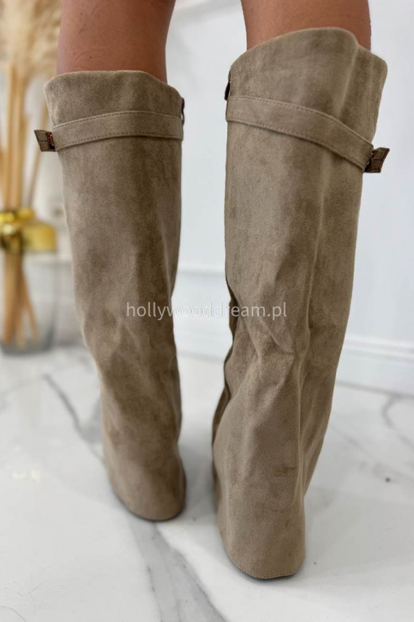 - Kozaki zamszowe z wywiniętą cholewką