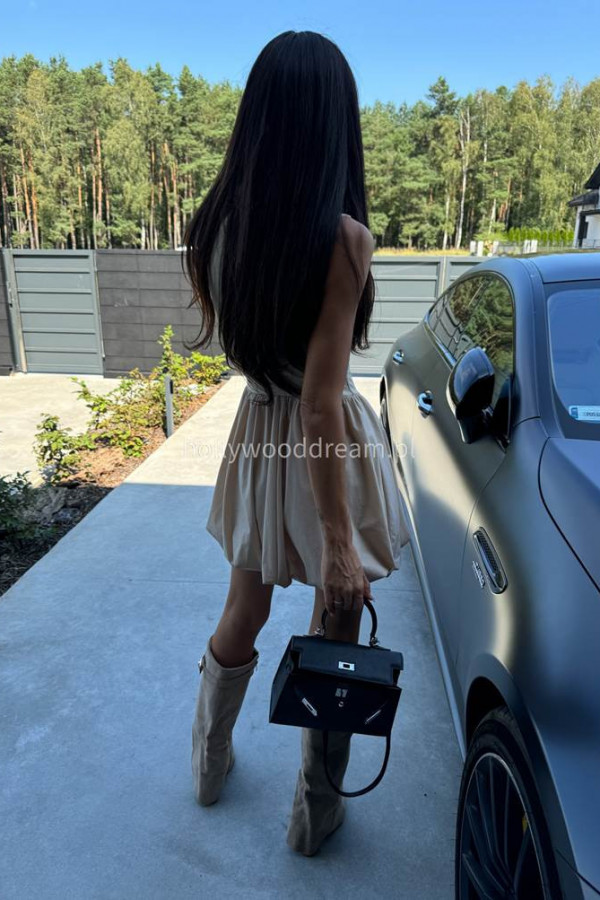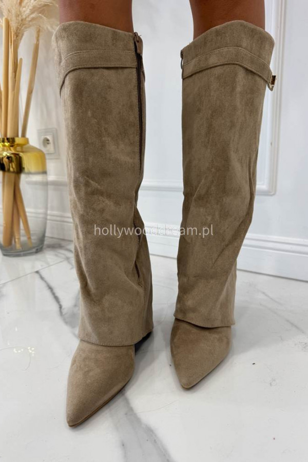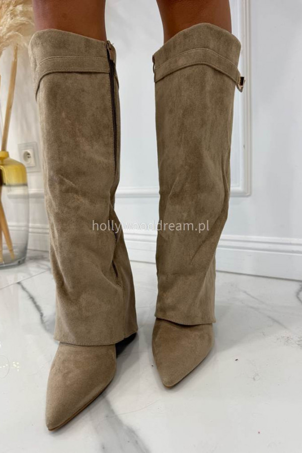 Kozaki zamszowe na słupku z wywniętą cholewką beżowe RELLA
