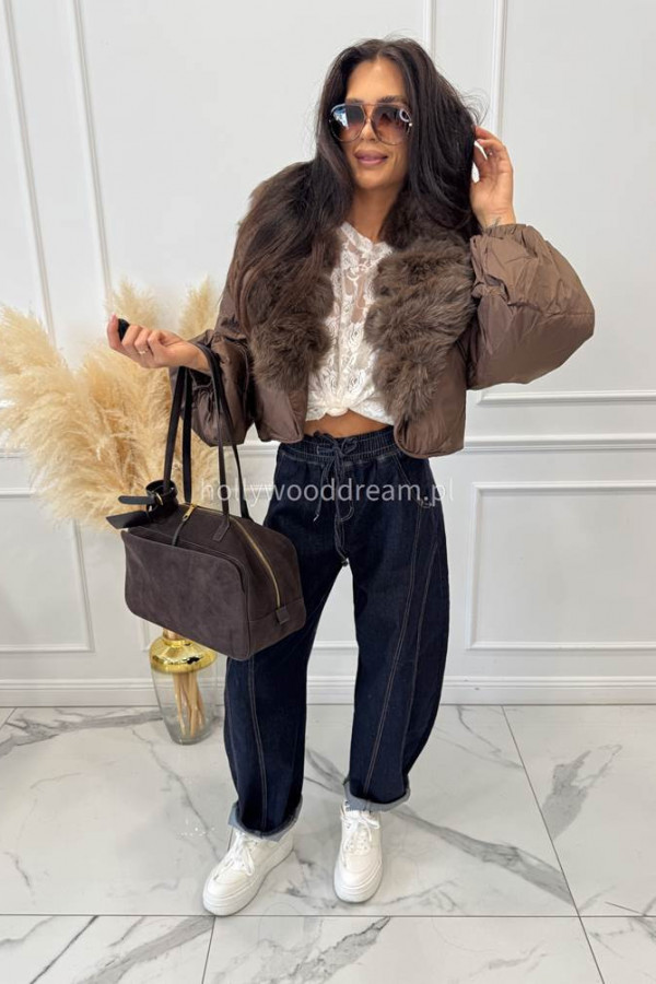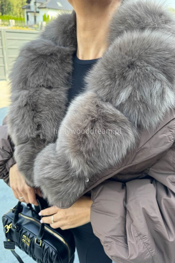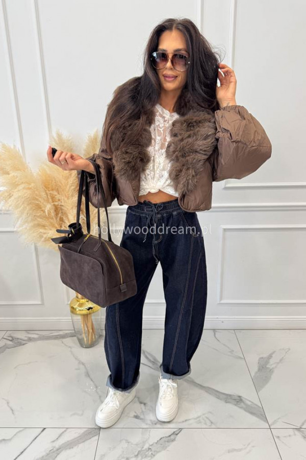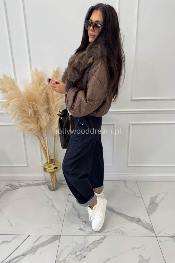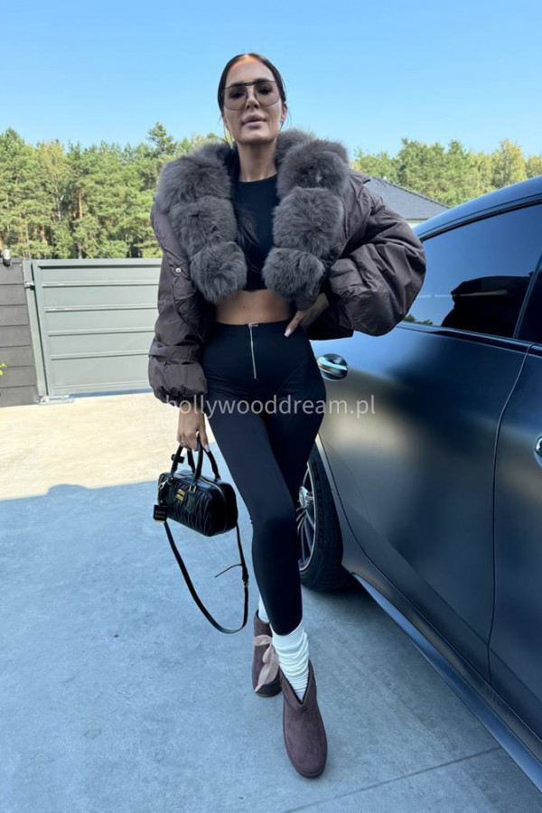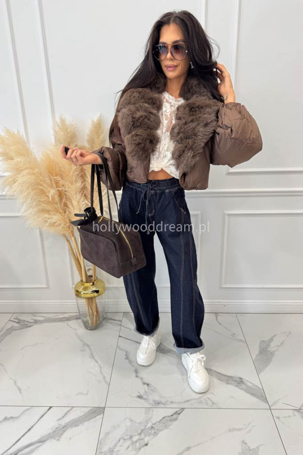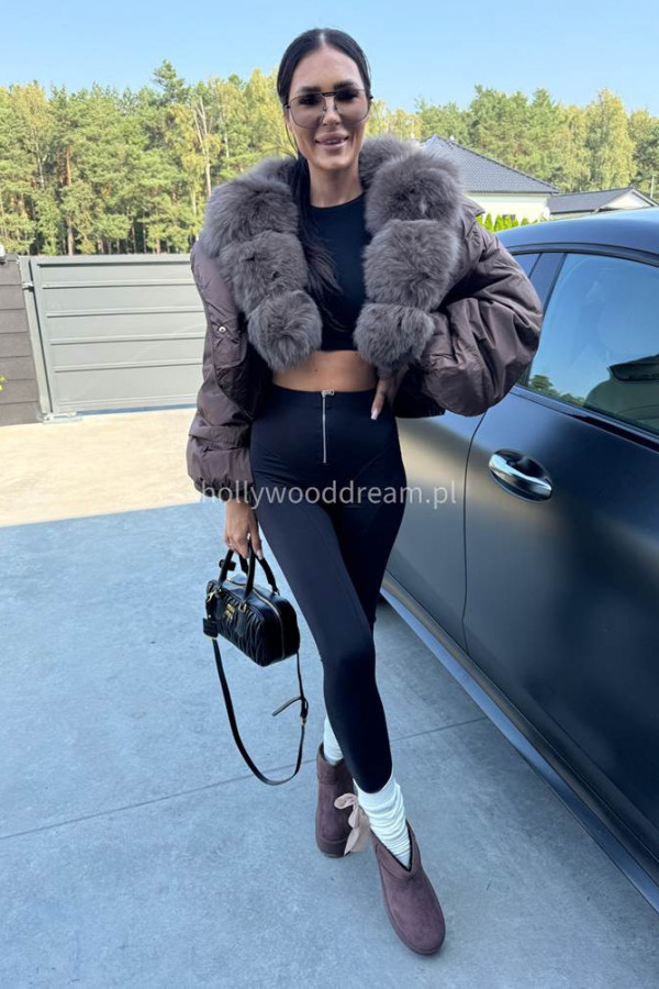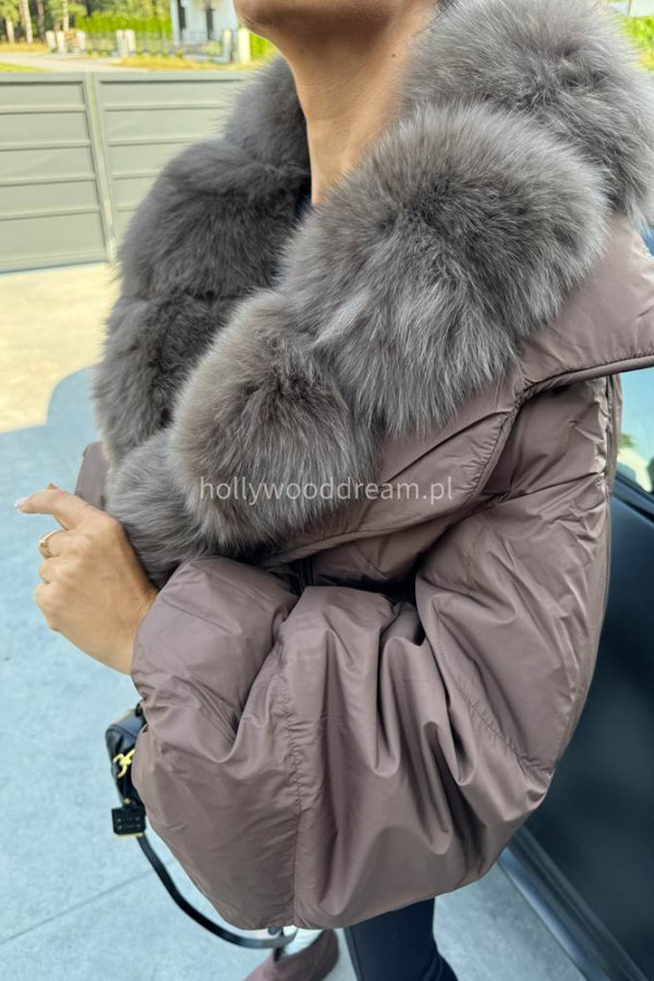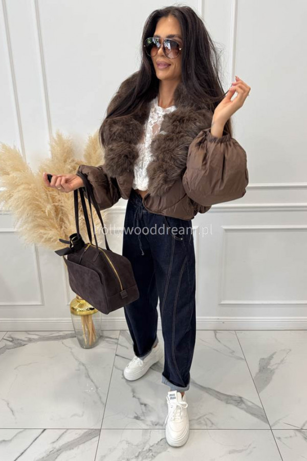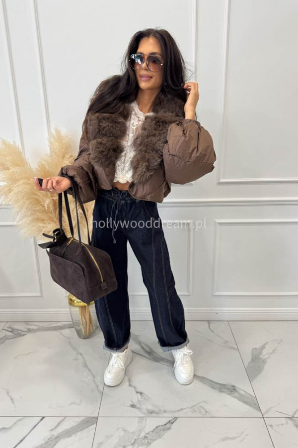 Kurtka krótka puchowa z odpinanym futrem czekoladowa z czekoladowym futrem TOMMY 37