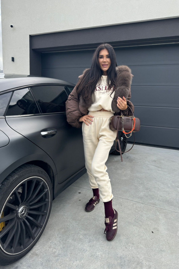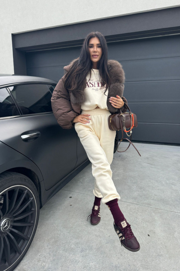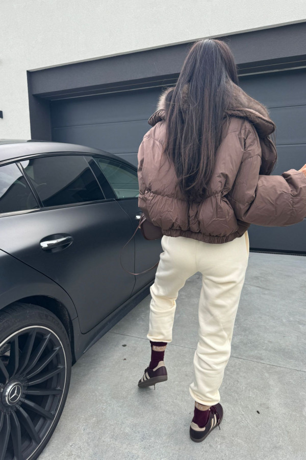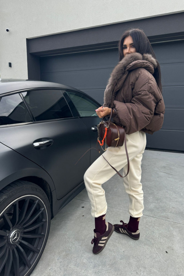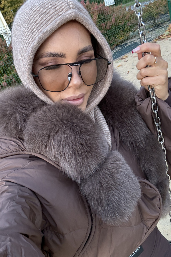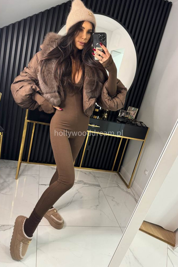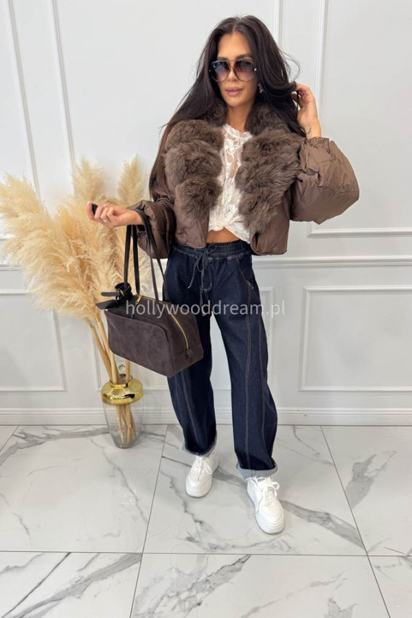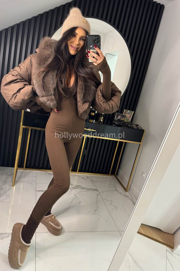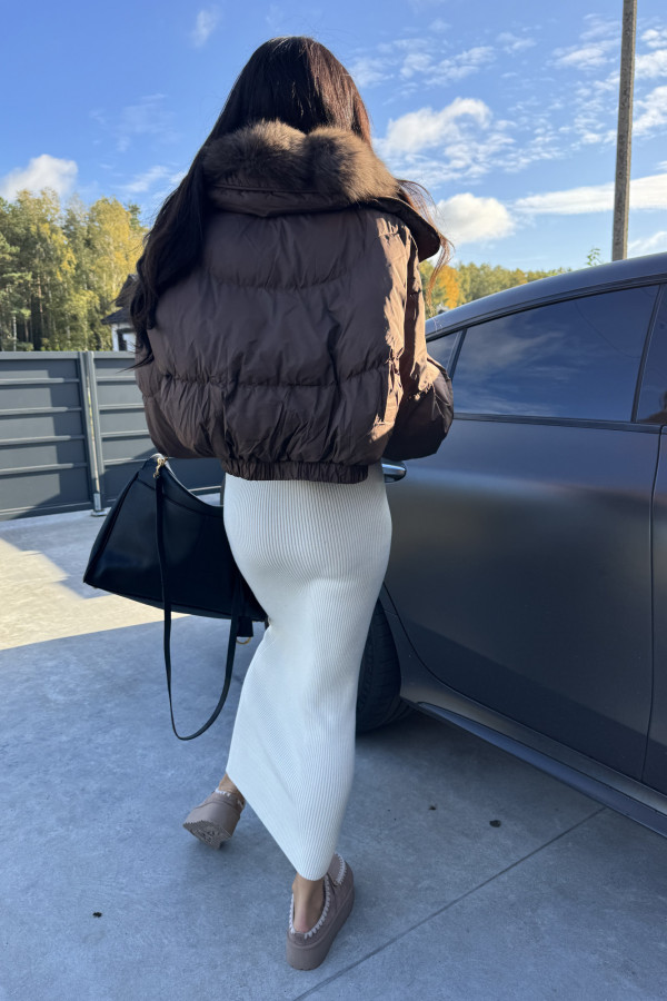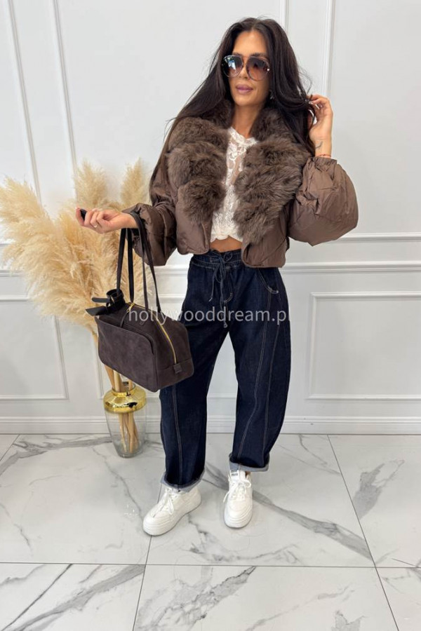 Kurtka krótka puchowa z odpinanym futrem czekoladowa z czekoladowym futrem TOMMY 37
