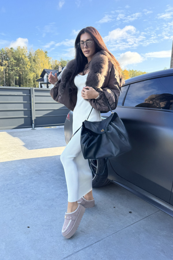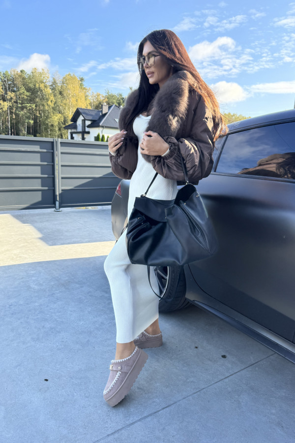 Kurtka krótka puchowa z odpinanym futrem TOMMY czekoladowa z czekoladowym futrem to połączenie stylu, wygody i funkcjonalności. Wykonana z wysokiej jakości materiałów, zapewnia ciepło w chłodniejsze dni, a jej puchowe wypełnienie sprawia, że jest lekka i komfortowa w noszeniu. Odpinane futro w dopasowanym, czekoladowym odcieniu dodaje kurtce elegancji i luksusowego wyglądu, a jednocześnie pozwala na zmianę stylu w zależności od okazji. Krótki krój idealnie podkreśla sylwetkę, tworząc nowoczesny i modny look. Kurtka TOMMY to must-have na zimowe dni, która świetnie sprawdzi się zarówno w codziennych, jak i bardziej eleganckich stylizacjach. Rozmiarówka chińska.