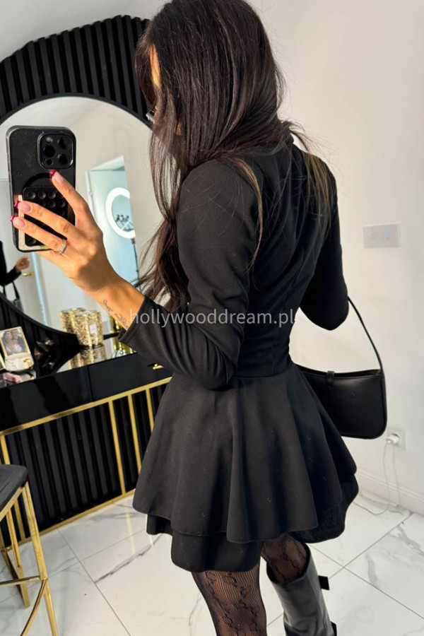Kombinezon al'a sukienka z wiązaniem i falbaną SAMANTA czarny 17