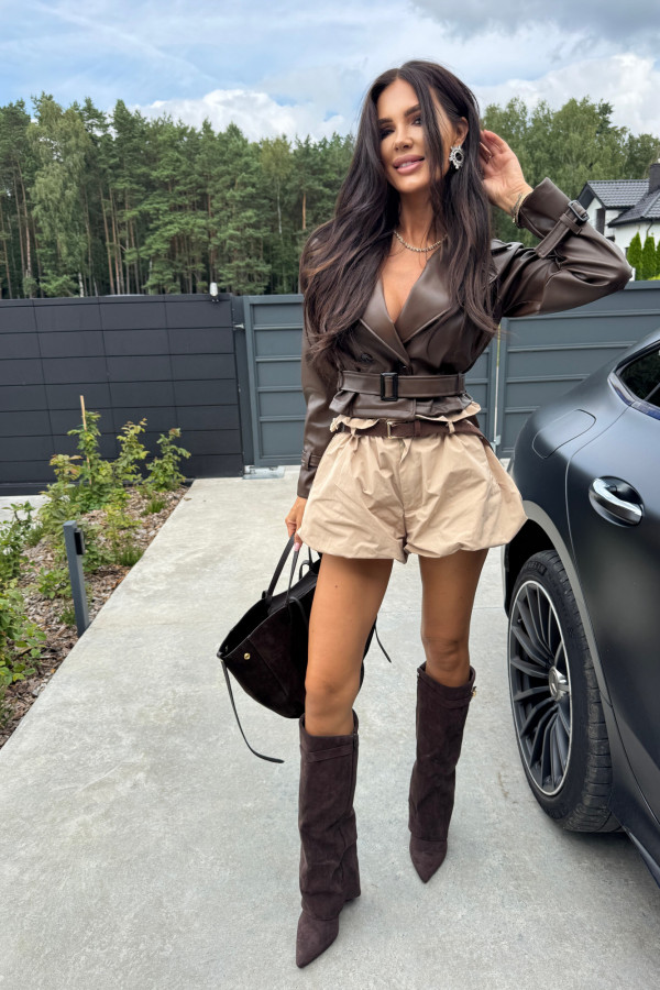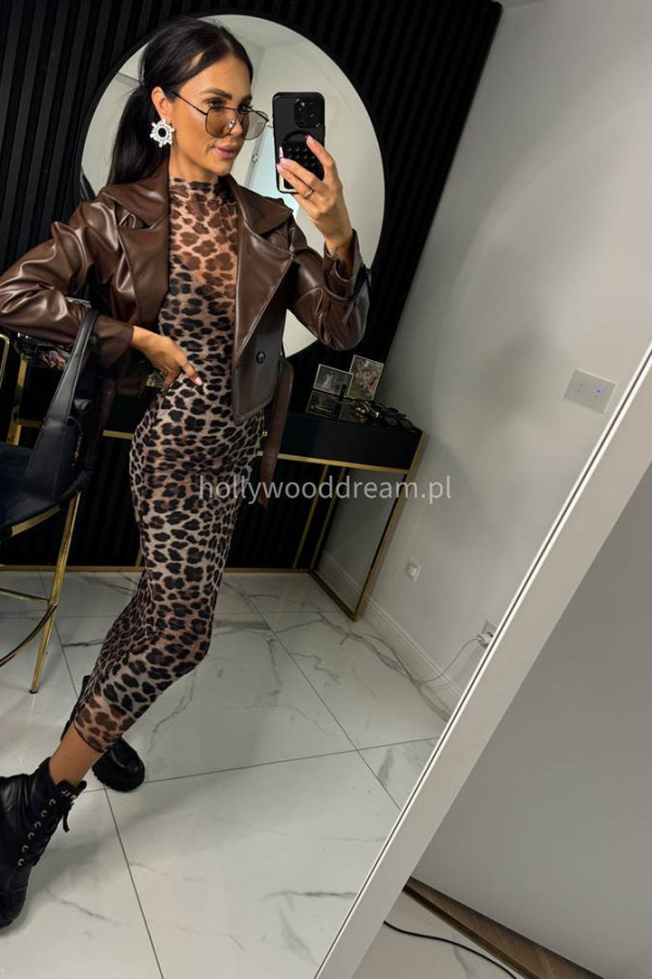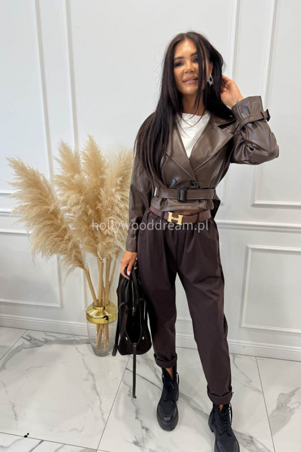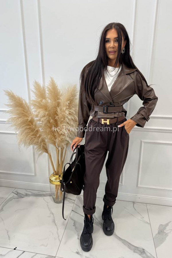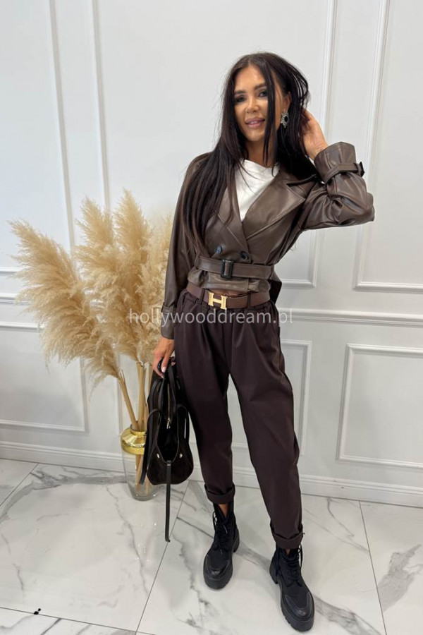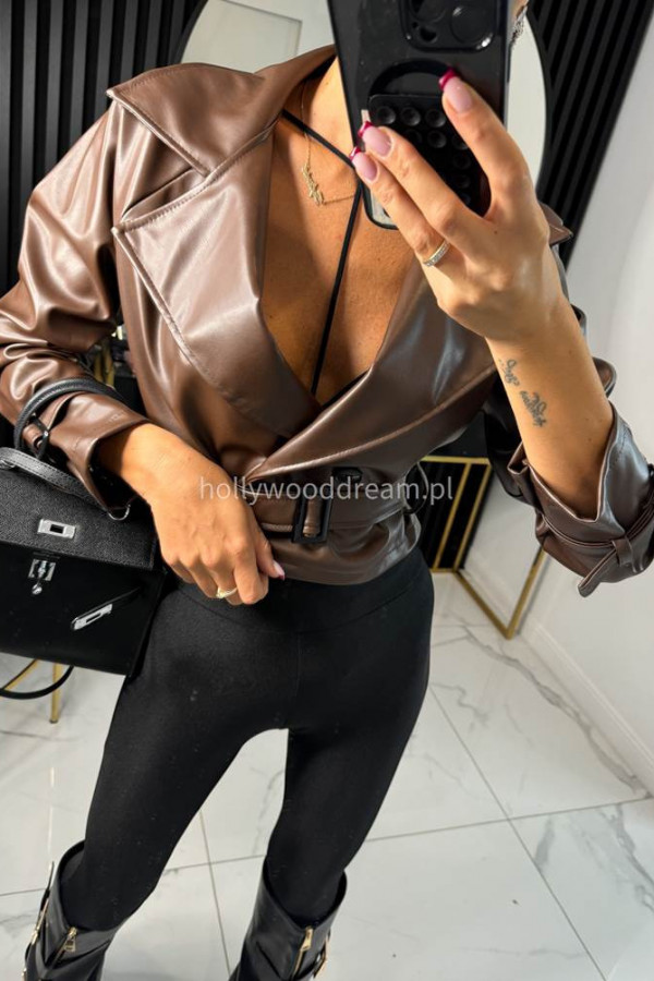 Kurtka z eko-skóry CORTA ciemno czekoladowa 19