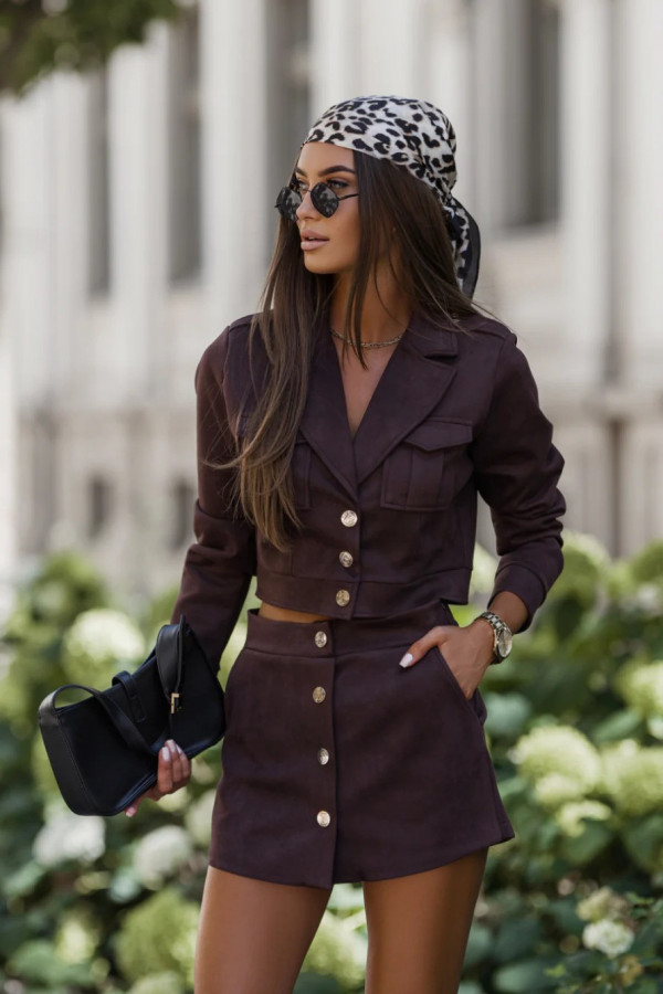 Komplet kurtka + spódnico-spodenki ze złotymi guzikami EMILIA czekoladowy 121