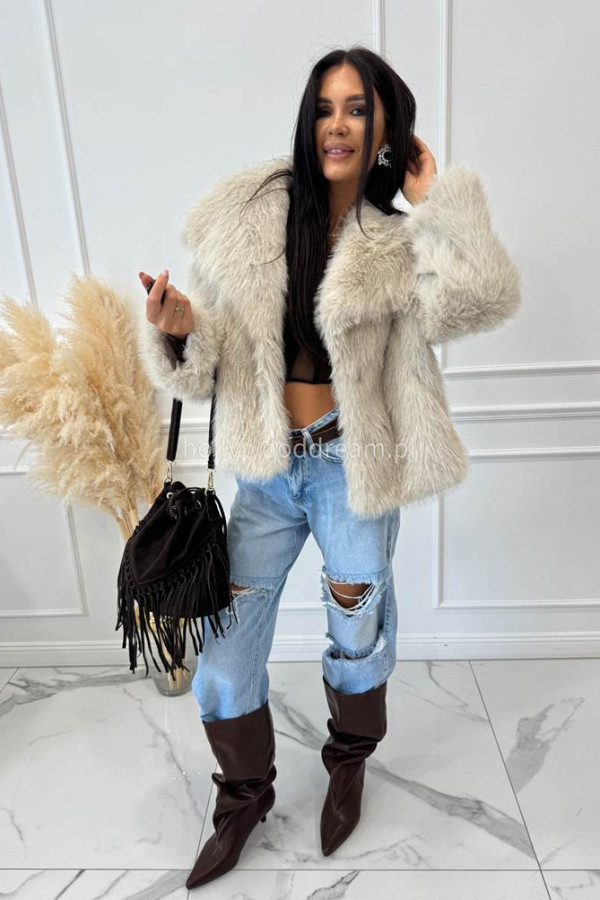 Futerko z kołnierzem zapinane na napy OTYLIO beżowe to elegancka propozycja, która idealnie sprawdzi się zarówno na wyjątkowe okazje, jak i codzienne stylizacje, dodając im szczypty glamour. Futro prezentuje się niezwykle elegancko, dodając szyku i wyjątkowości każdej stylizacji. Futro OTYLIO możesz nosić z elegancką sukienką i wysokimi kozakami, tworząc szykowną kreację na wieczór. Wykonane z dbałością o każdy detal, będzie nie tylko modnym dodatkiem, ale także funkcjonalnym elementem Twojej zimowej garderoby. Model dostępny w dwóch rozmiarach S/M oraz M/L.
