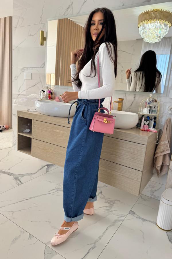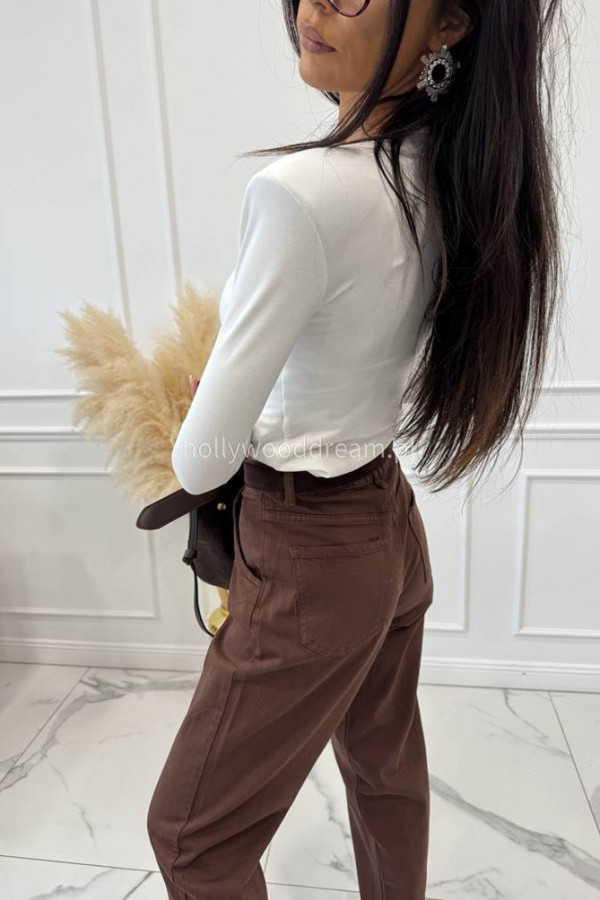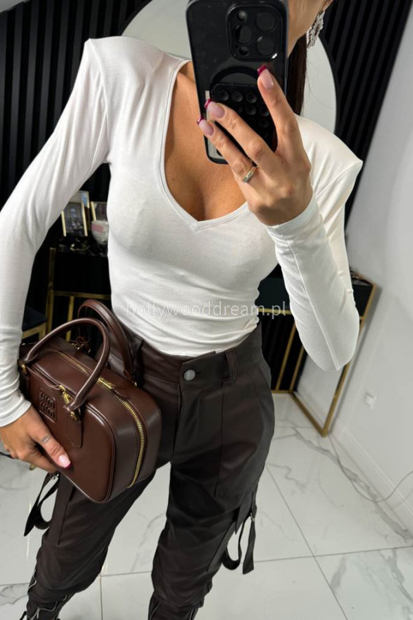 - Bluzka z dekoltem V i poduszkami na ramionach WIKTORIA biała