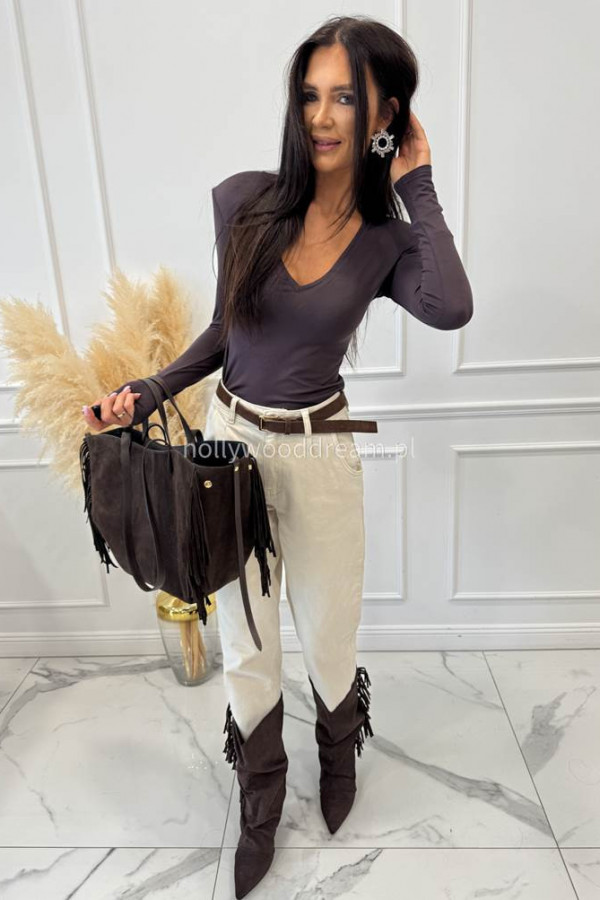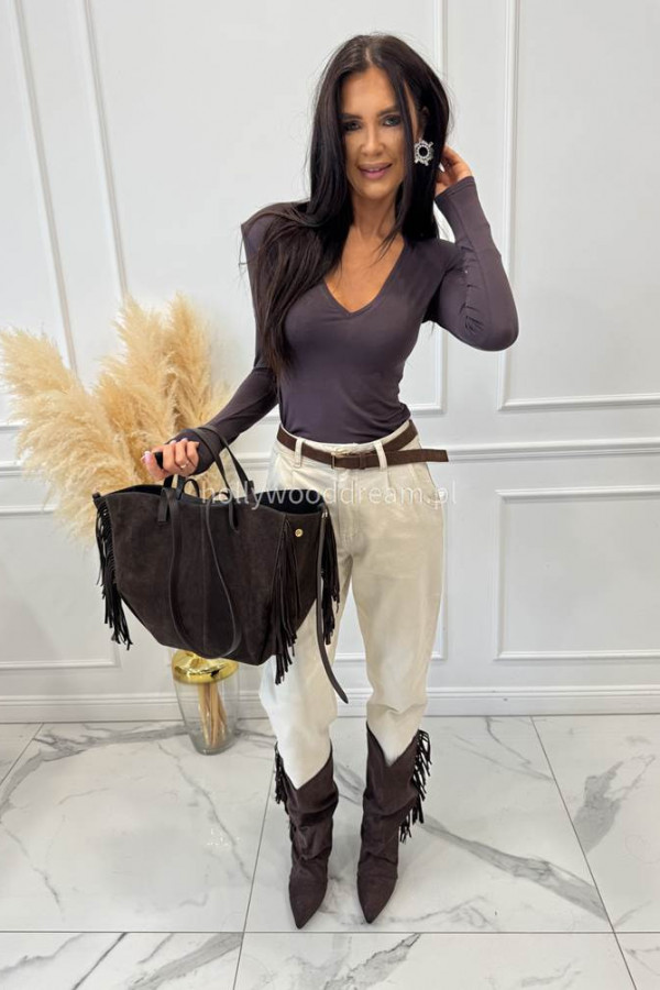 - Bluzka z dekoltem V i poduszkami na ramionach WIKTORIA czekoladowa 131