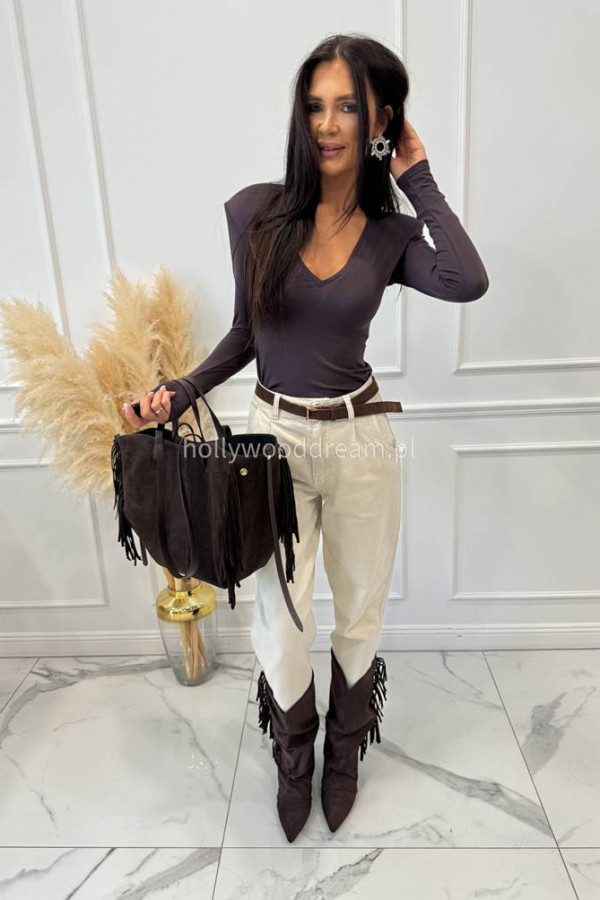 Bluzka z dekoltem V i poduszkami na ramionach czekoladowa WIKTORIA 131