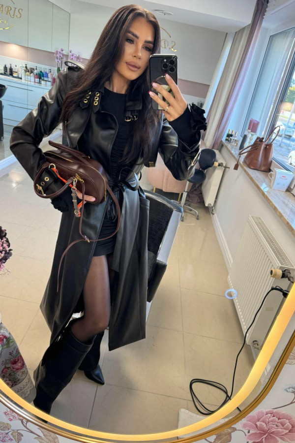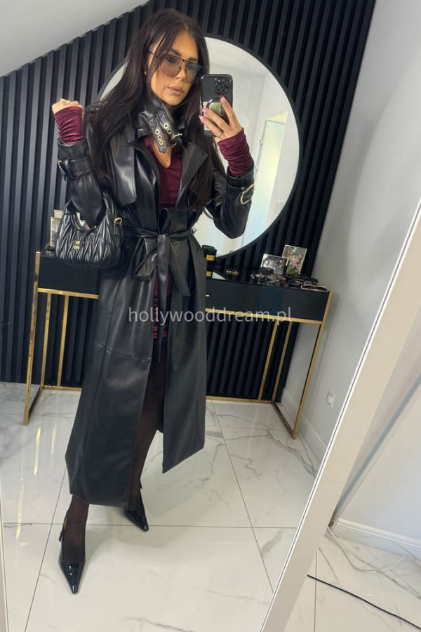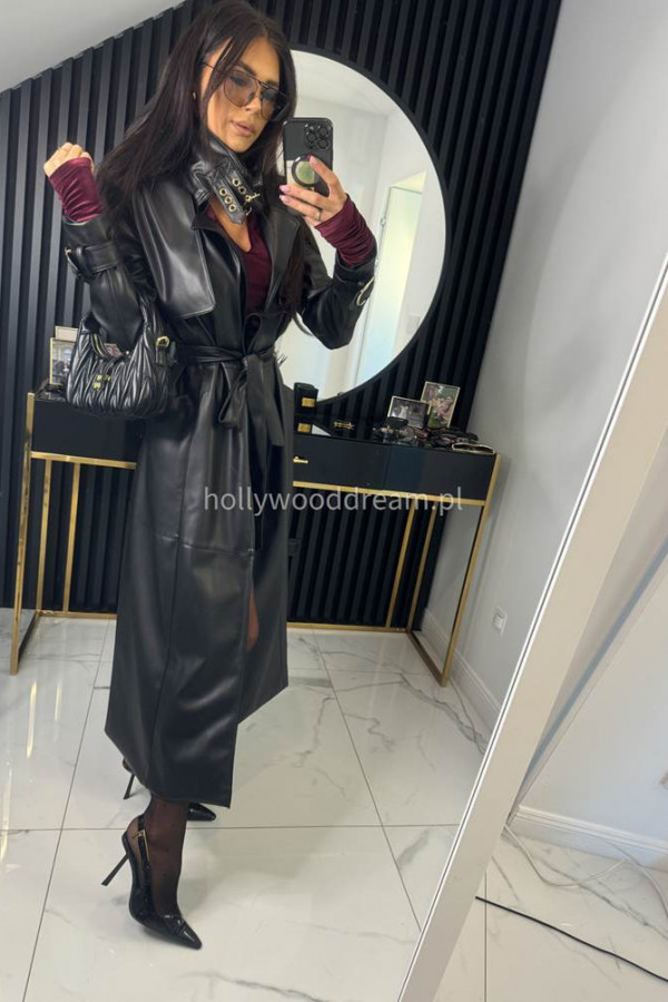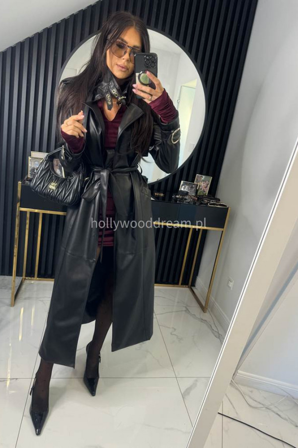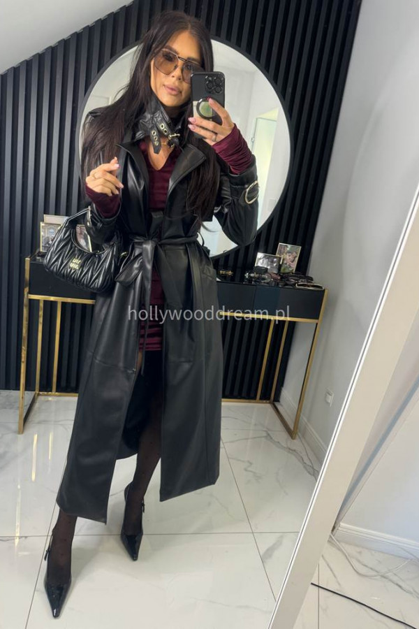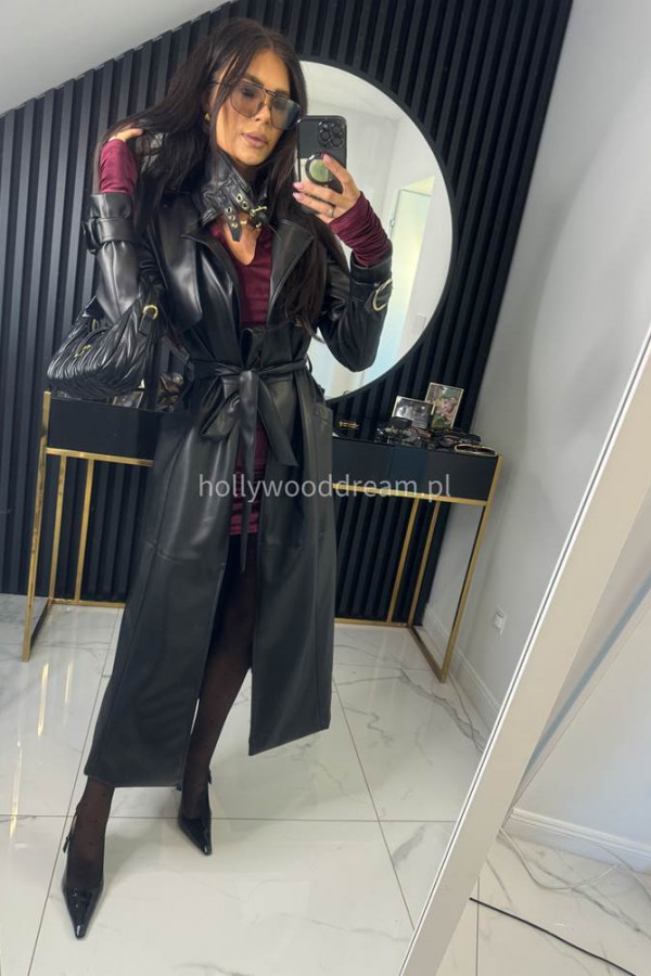 Płaszcz skórzany MONA w kolorze czranym to luksusowy element garderoby, który łączy klasyczny styl z nowoczesnym wykończeniem. Wykonany z wysokiej jakości imitacji skóry , zapewnia elegancki wygląd i trwałość na długie lata. Jego głęboki burgundowy odcień nadaje mu wyjątkowego charakteru, doskonale wpisując się w aktualne trendy modowe. Zapewnij sobie ciepło i styl tej zimy z Hollywood Dream! Model dostępny jest w rozmiarach S-L.