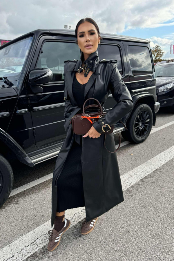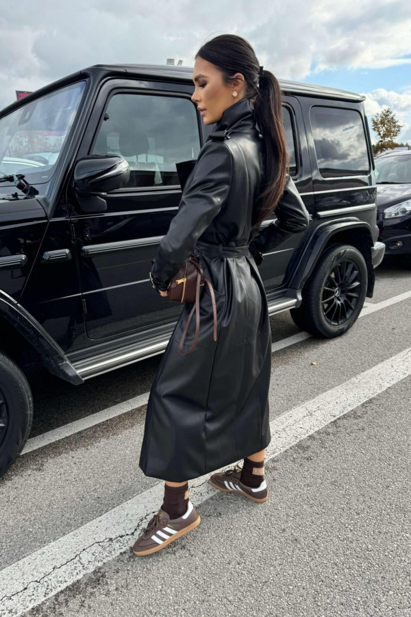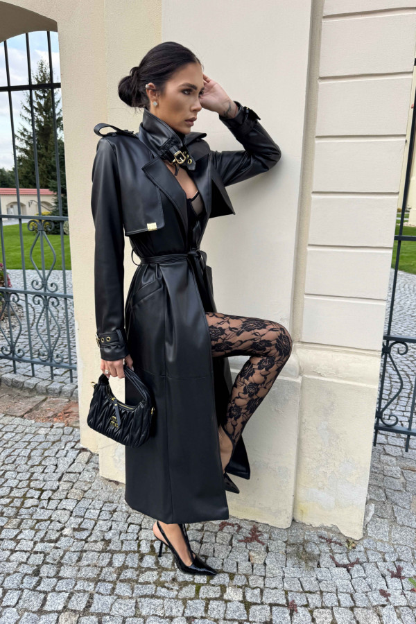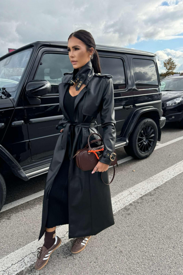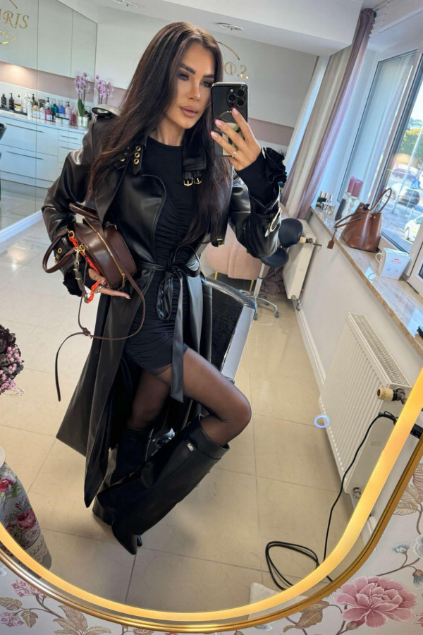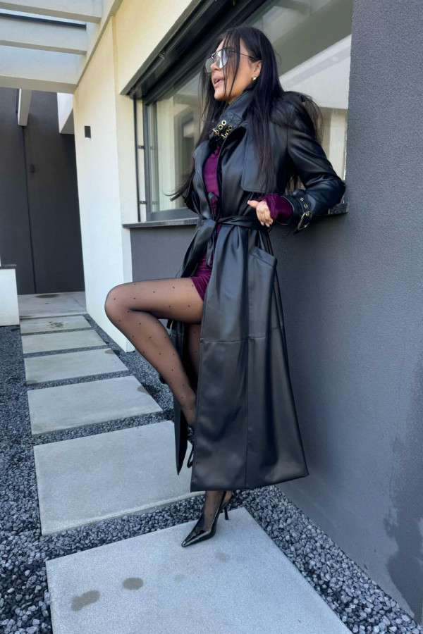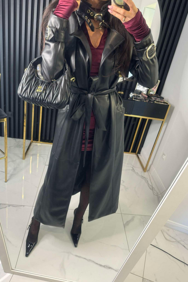 Płaszcz skórzany MONA w kolorze czranym to luksusowy element garderoby, który łączy klasyczny styl z nowoczesnym wykończeniem. Wykonany z wysokiej jakości imitacji skóry , zapewnia elegancki wygląd i trwałość na długie lata. Jego głęboki burgundowy odcień nadaje mu wyjątkowego charakteru, doskonale wpisując się w aktualne trendy modowe. Zapewnij sobie ciepło i styl tej zimy z Hollywood Dream! Model dostępny jest w rozmiarach S-L.