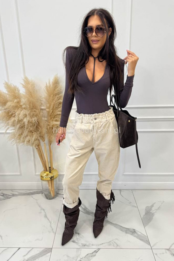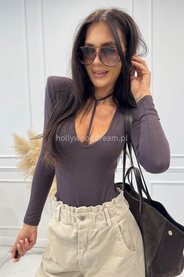 Body z chokerem AGATA czekoladowe to wyjątkowa propozycja dla kobiet, które lubią wyraziste i zmysłowe stylizacje. Wykonane z elastycznego materiału, doskonale dopasowuje się do sylwetki, podkreślając jej atuty. Charakterystycznym elementem tego modelu jest choker, który dodaje elegancji i nowoczesnego stylu. Idealne zarówno na wieczorne wyjścia, jak i na co dzień, body Agata świetnie komponuje się z eleganckimi spodniami czy spódnicą, tworząc odważne, a zarazem szykowne zestawienia. Model występuje w rozmiarze uniwersalnym