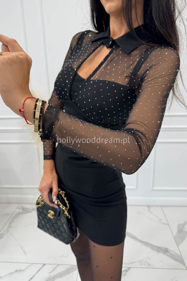 Sukienka z siateczkową górą z cekinami i kołnierzem DOROTA czarna 17