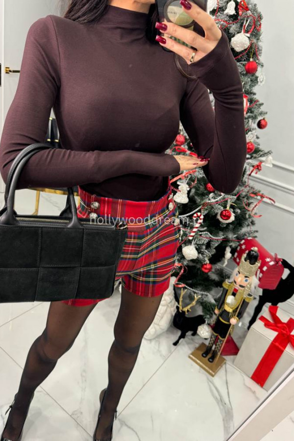 Bluzka z półgolfem i poduszkami na ramionach CELINA czekoladowa 30