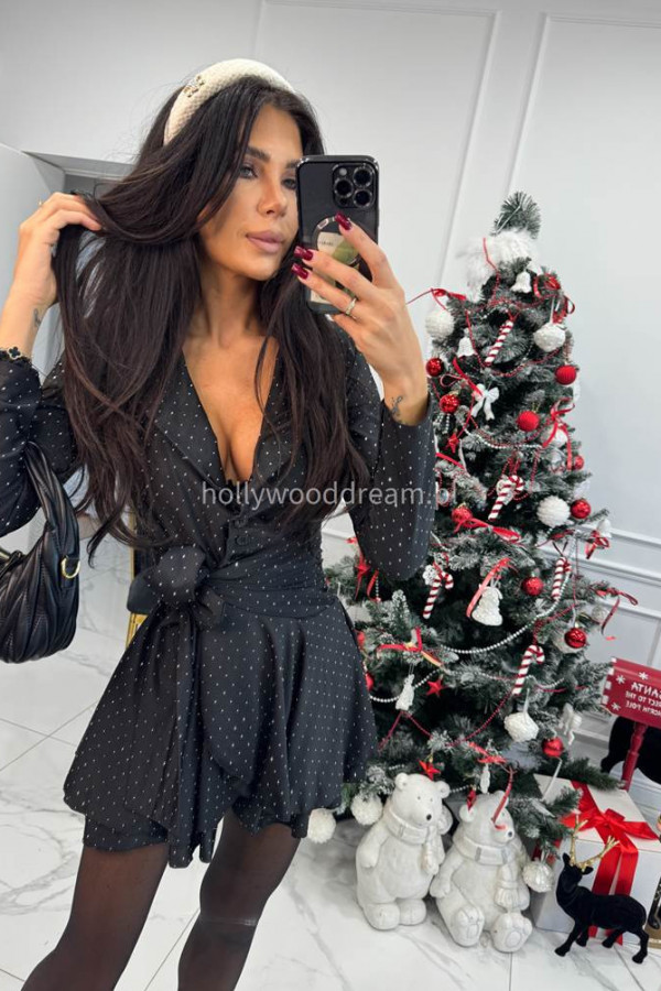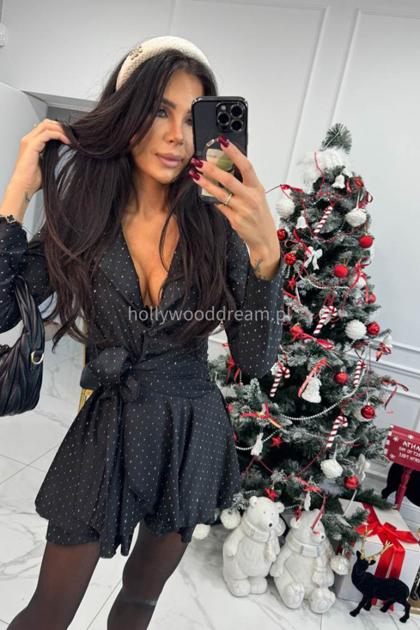 Kombinezon a'la sukienka w srebrne cyrkonie SAMANTA czarny 17