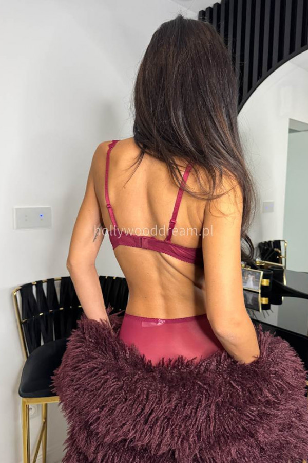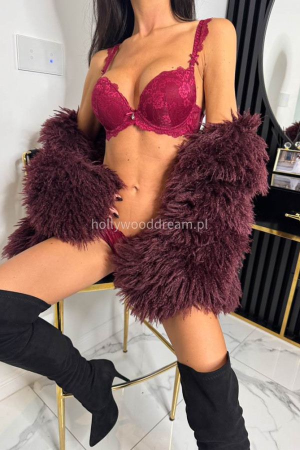 Komplet bielizny koronkowej push up stanik+majtki VIOLA burgundowy 89