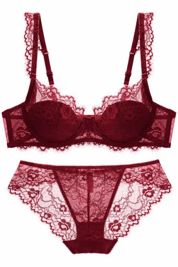 Komplet bielizny koronkowej biustonosz+majtki KICKY czerwony 89