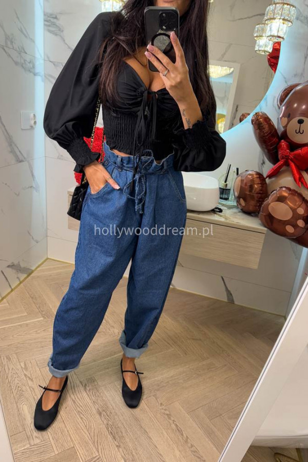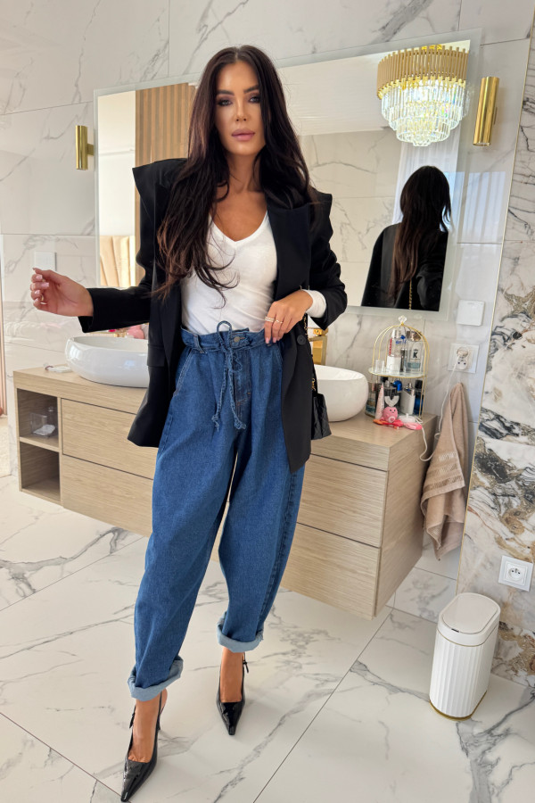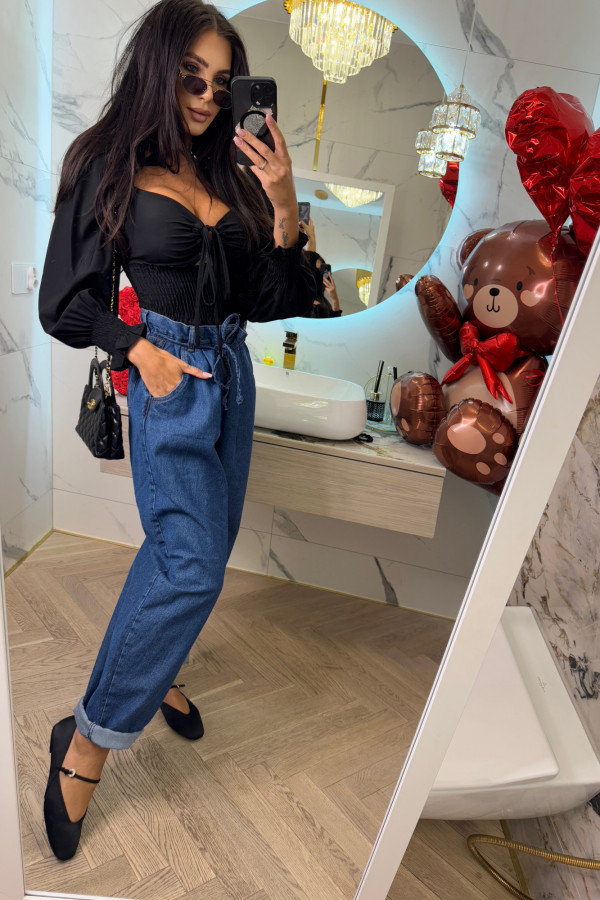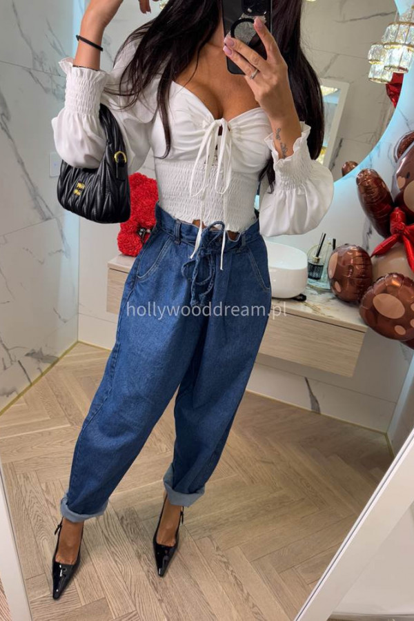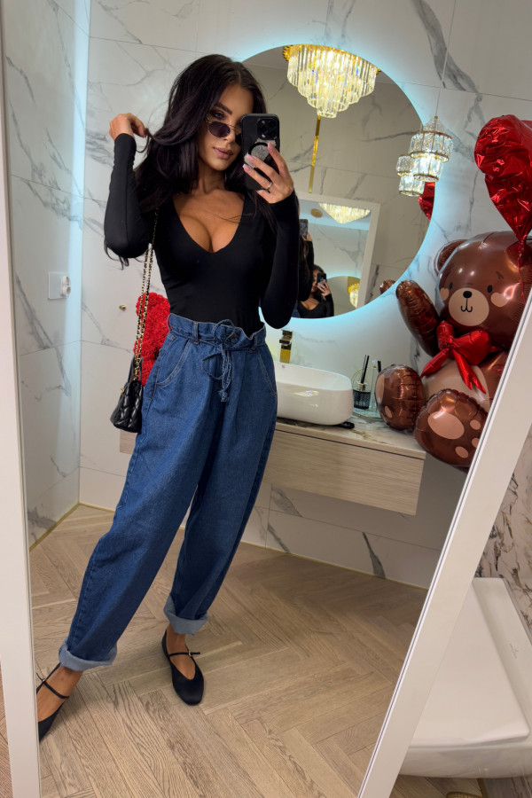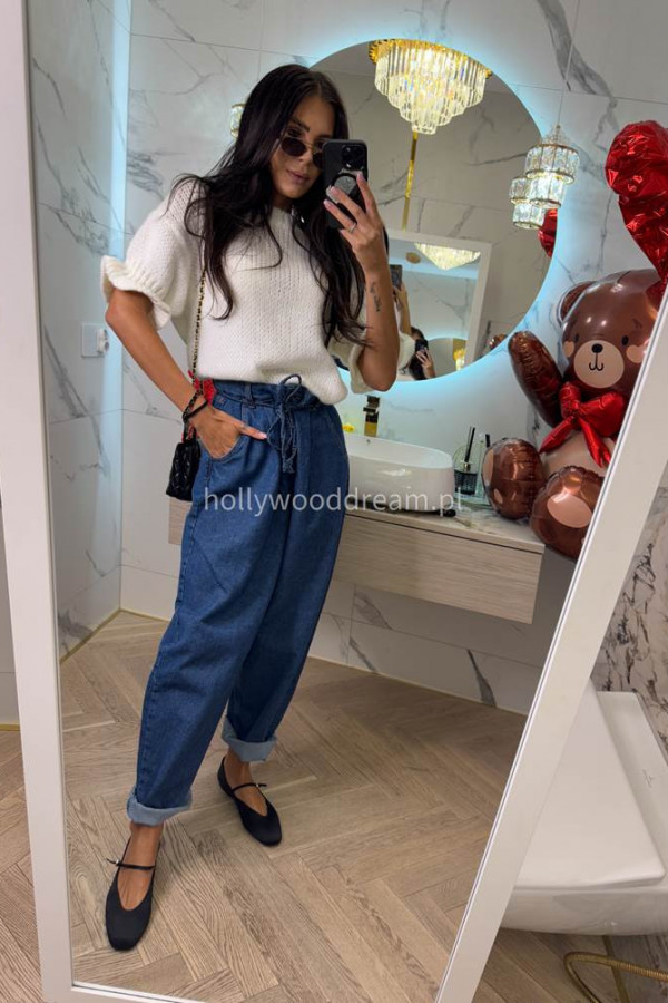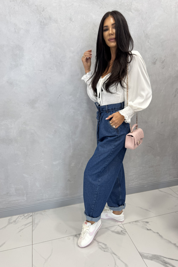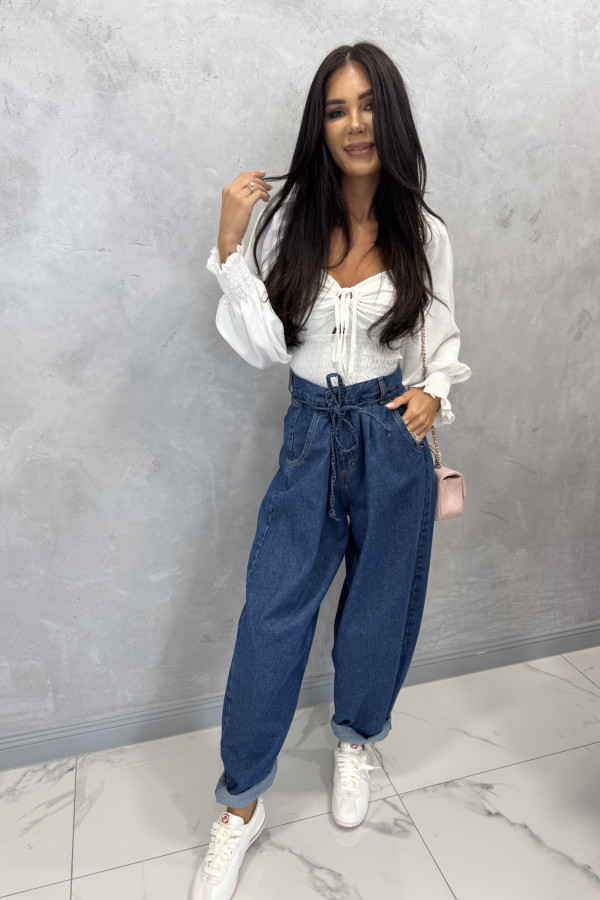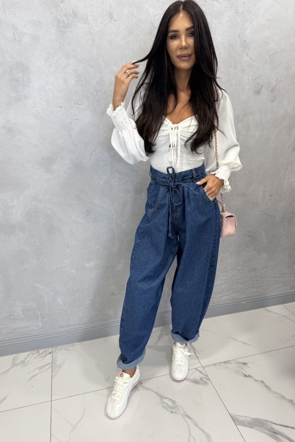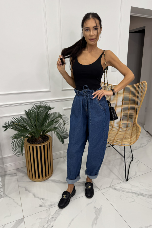 Spodnie jeans z wiązaniem 100% bawełna SARA ciemno niebieskie 38