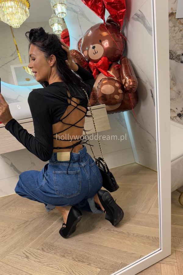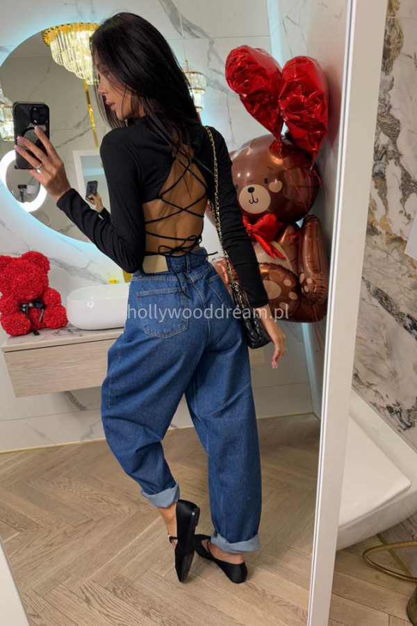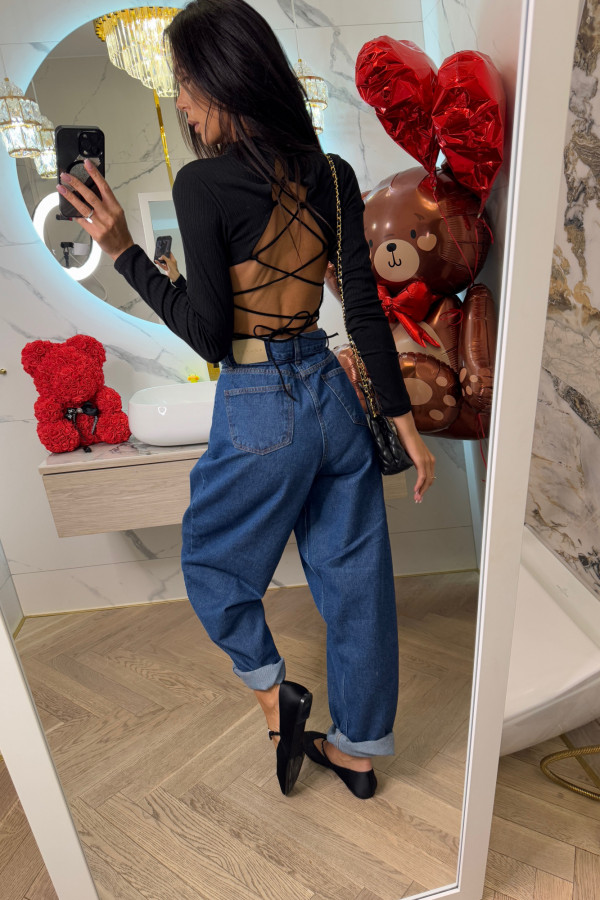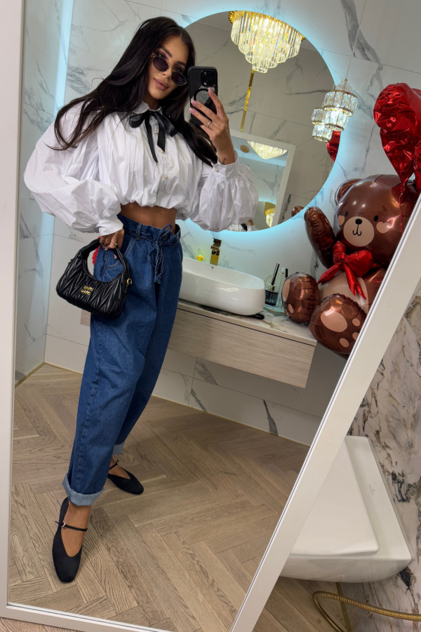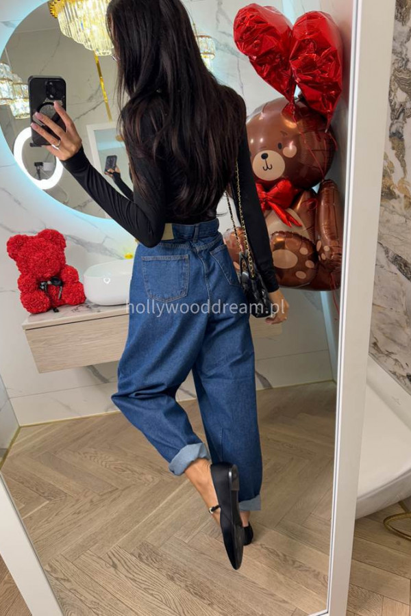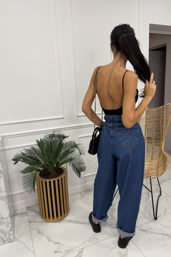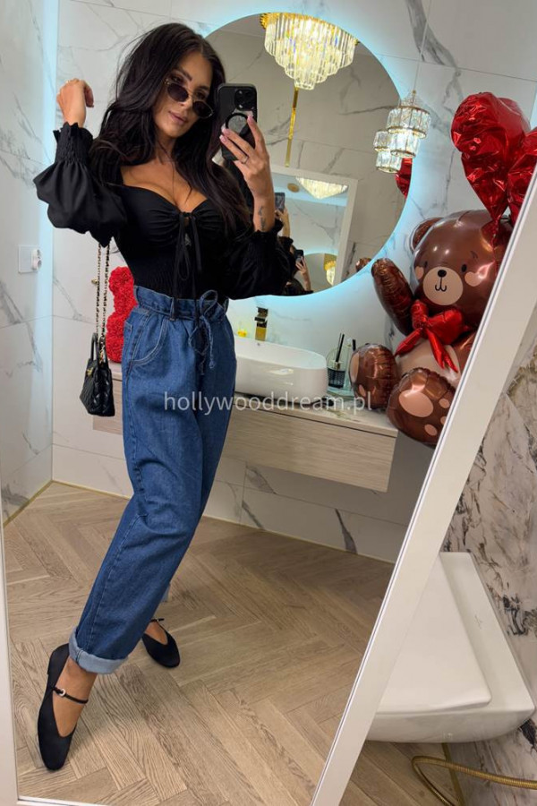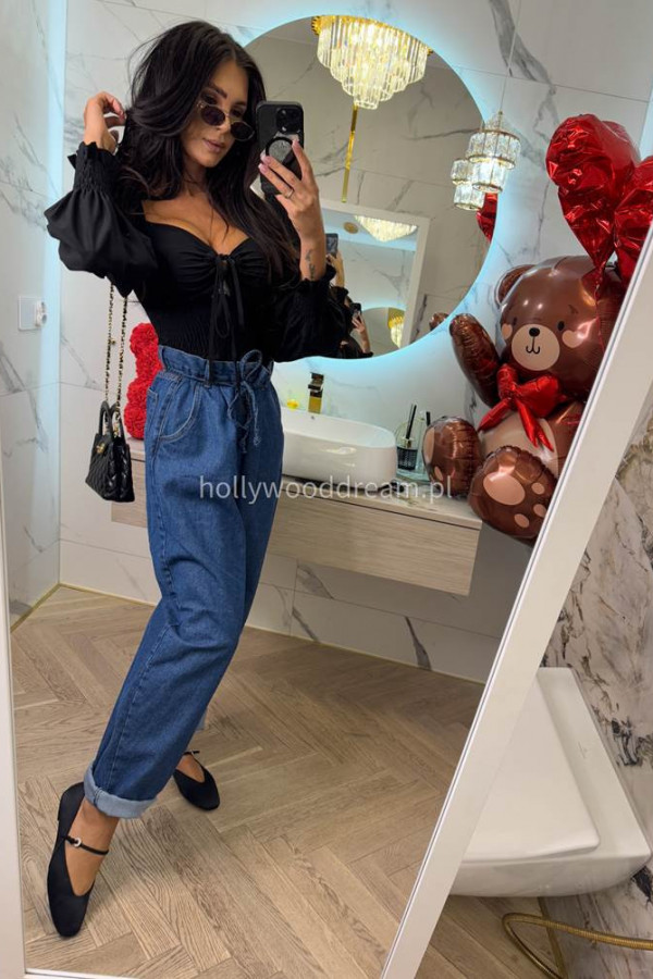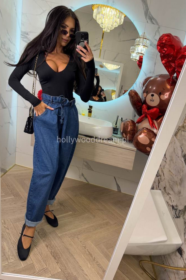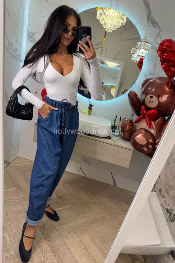 Spodnie jeans z wiązaniem 100% bawełna SARA ciemno niebieskie 38
