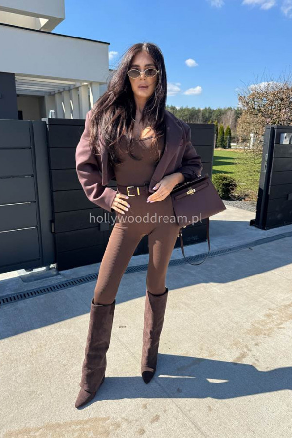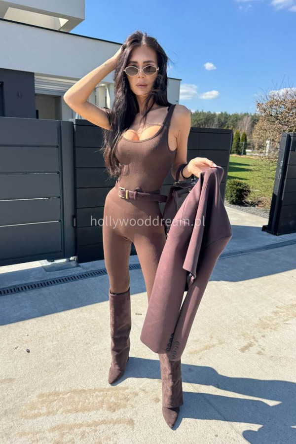 Kombinezon prążkowany na ramiączkach IGI czekoladowy 09