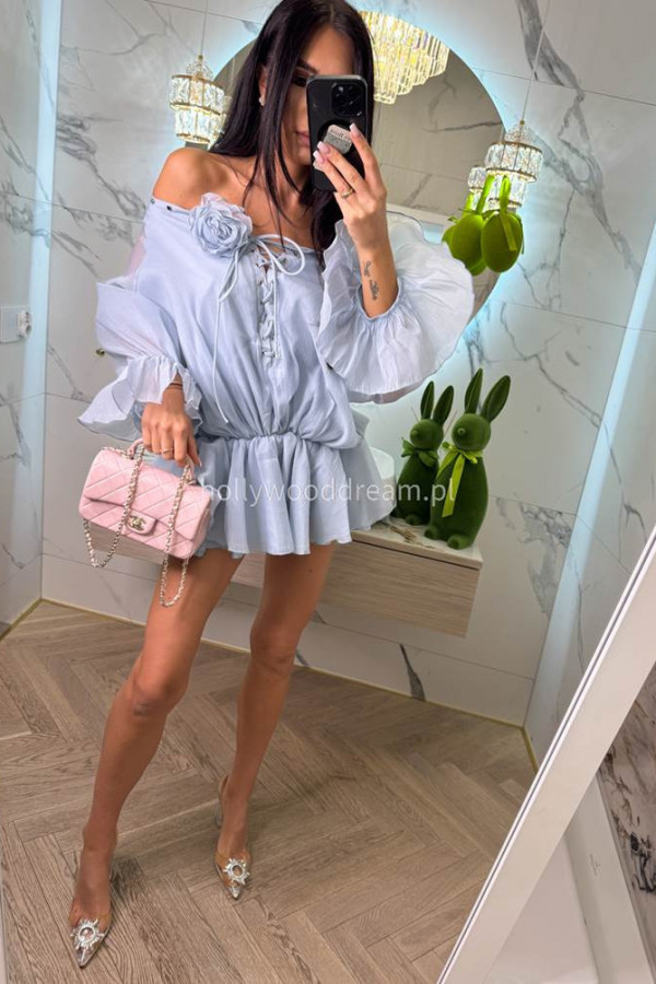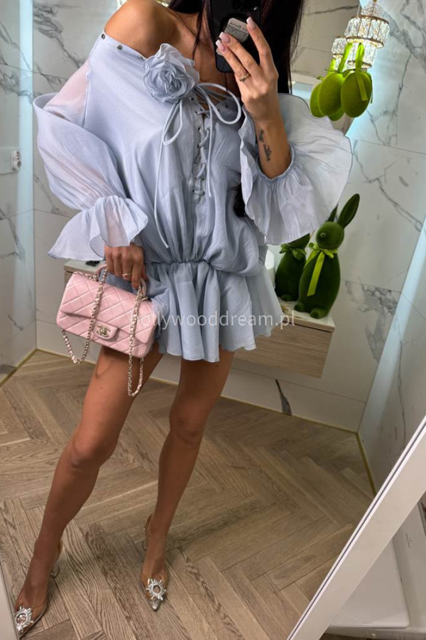 Sukienka mini hiszpanka z wiązaniem na przodzie ŻAKLIN błękitna 09