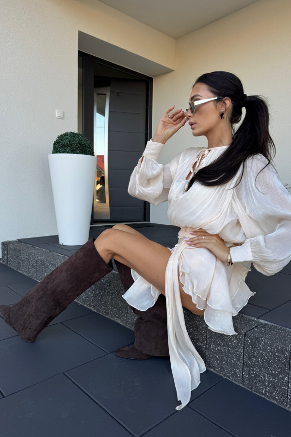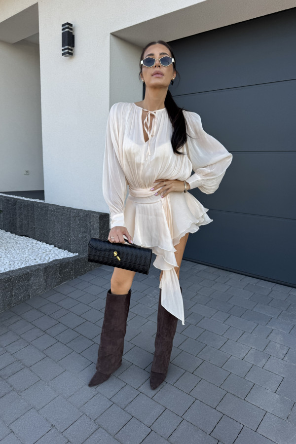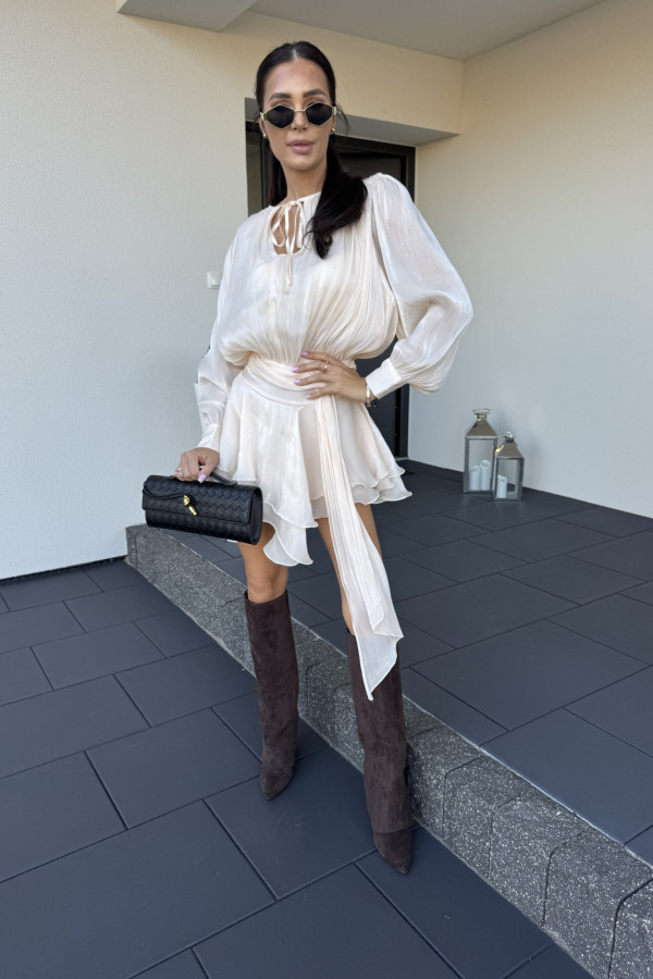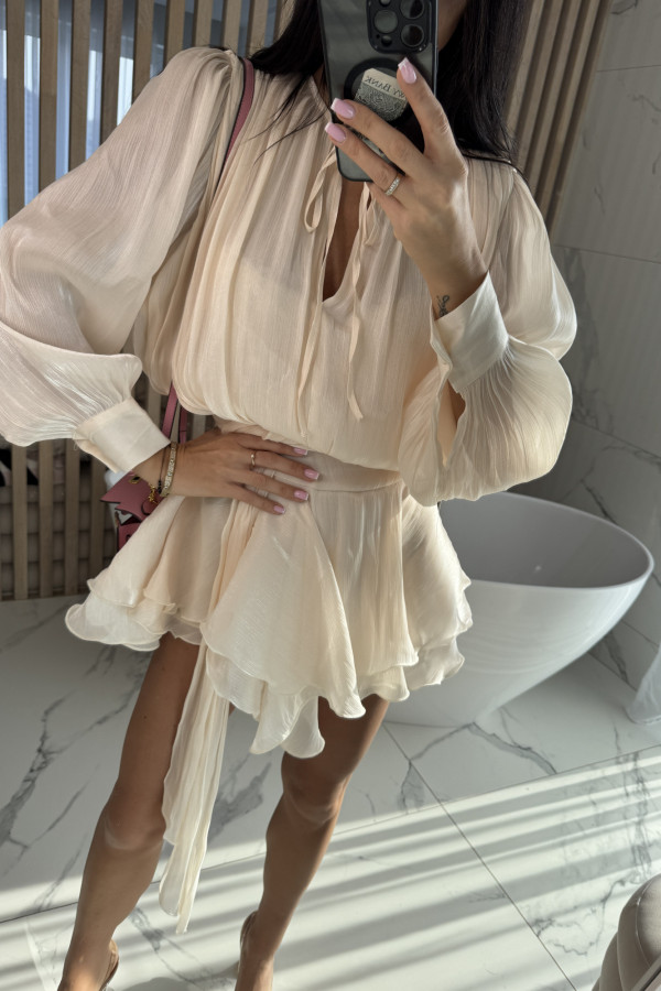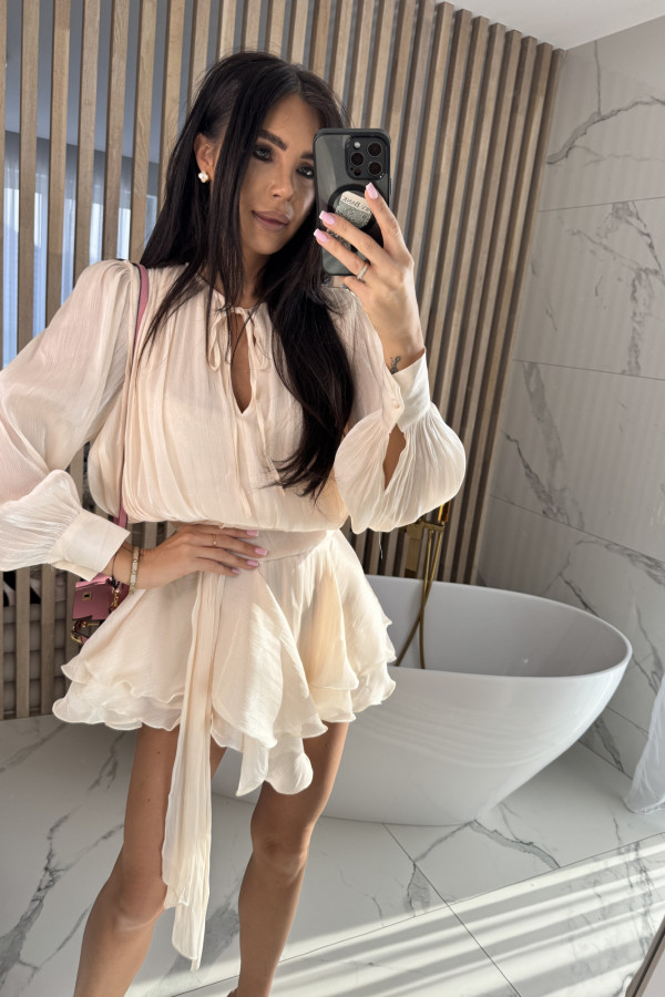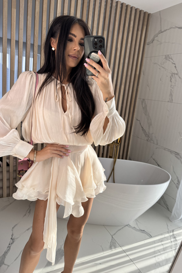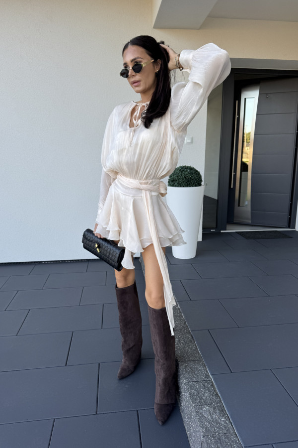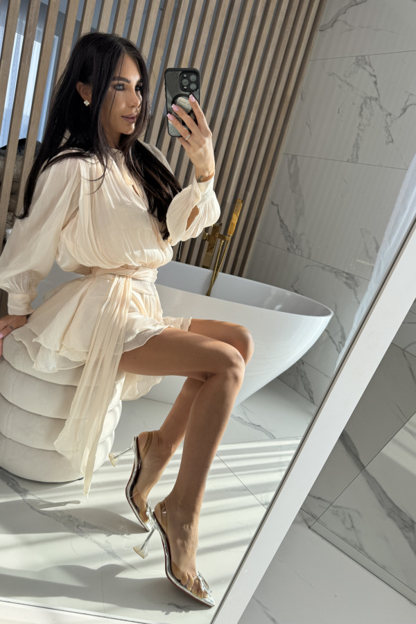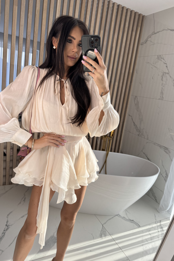 Kombinezon al'a sukienka połyskująca z opływającego materiału JENNY morelowa 09