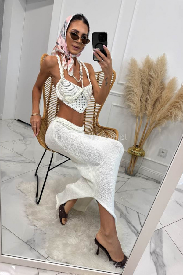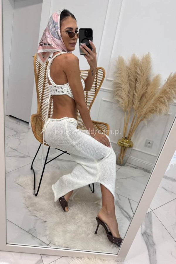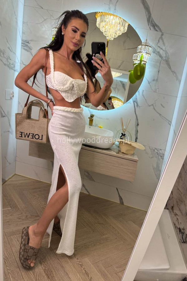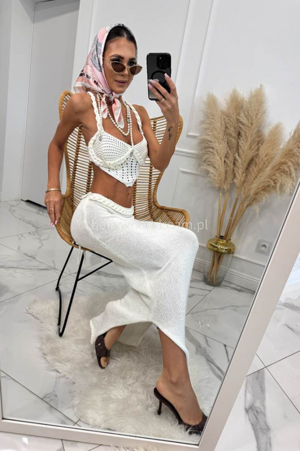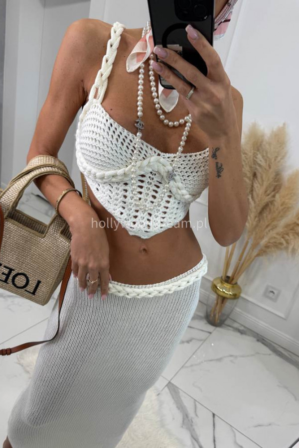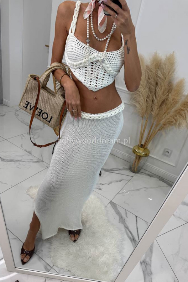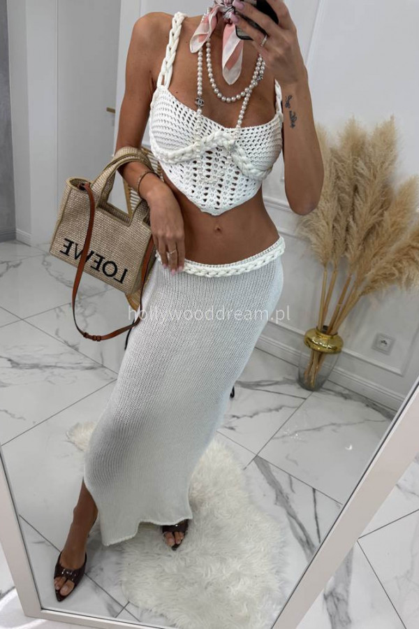 Komplet Top pleciony+spódnica midi z warkoczowym splotem GLORIA kremowy 89