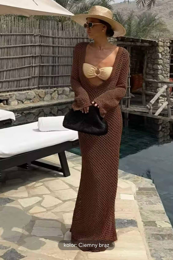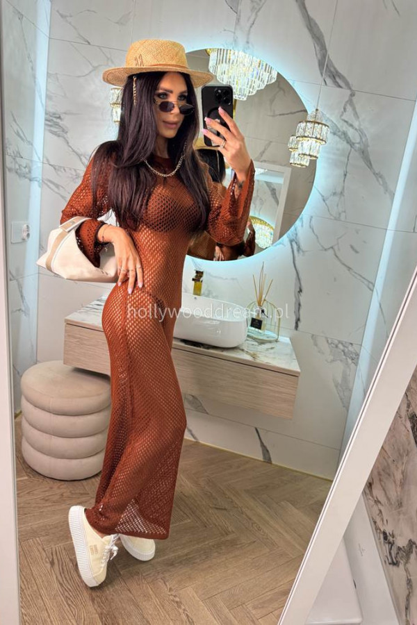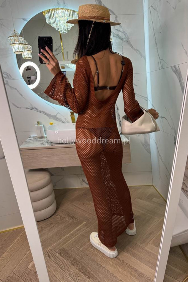 Sukienka plażowa maxi szydełkowa BAHAMAS czekoladowa 89