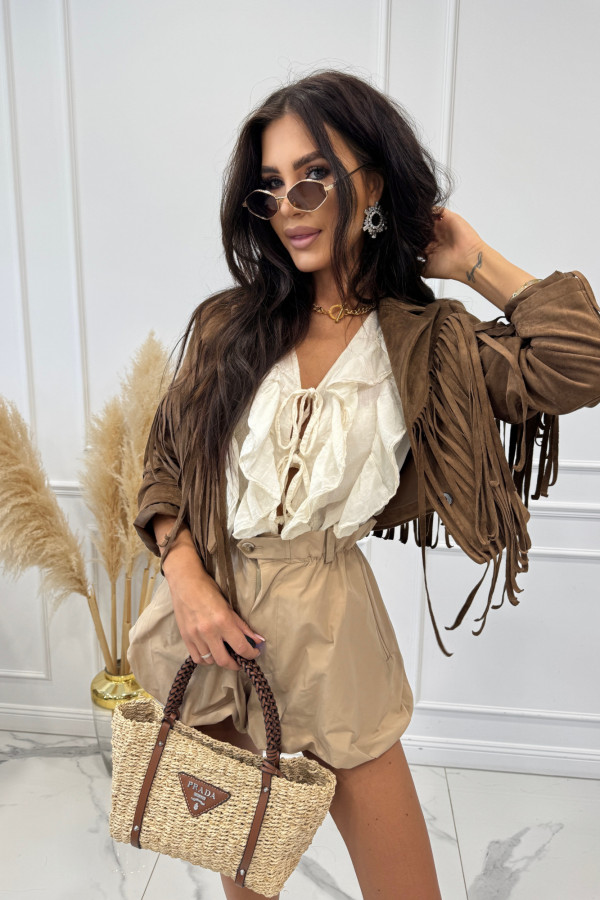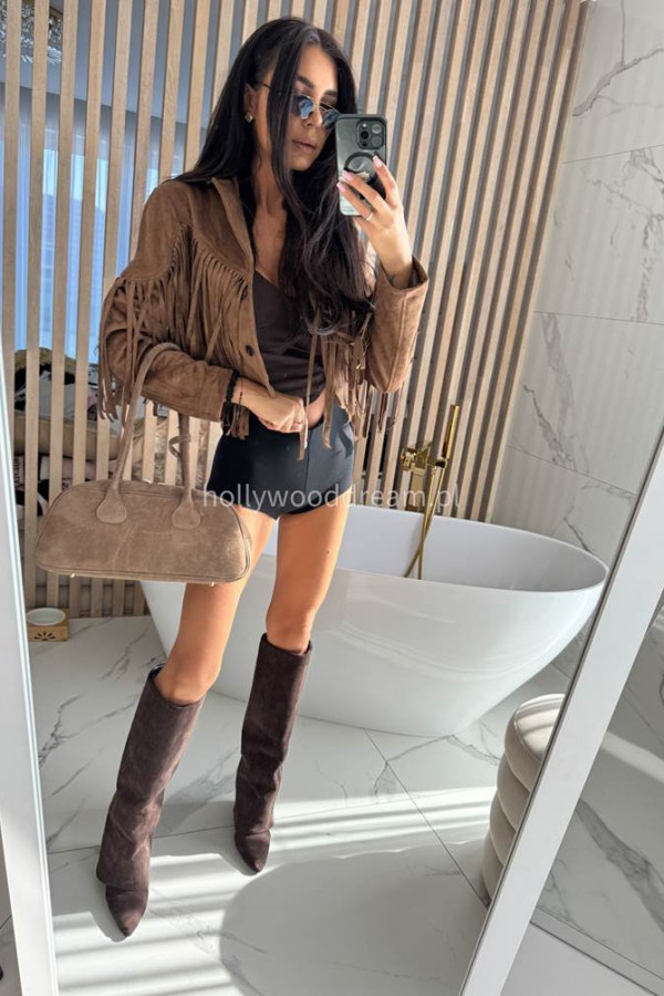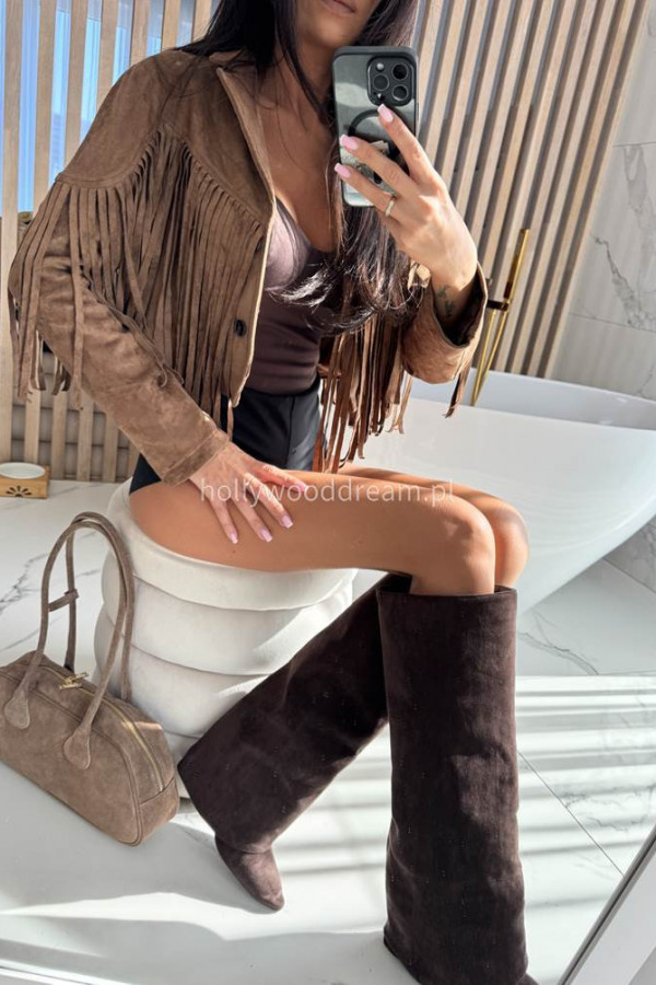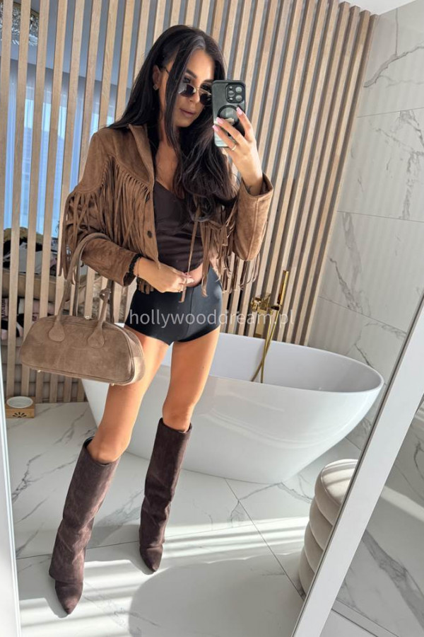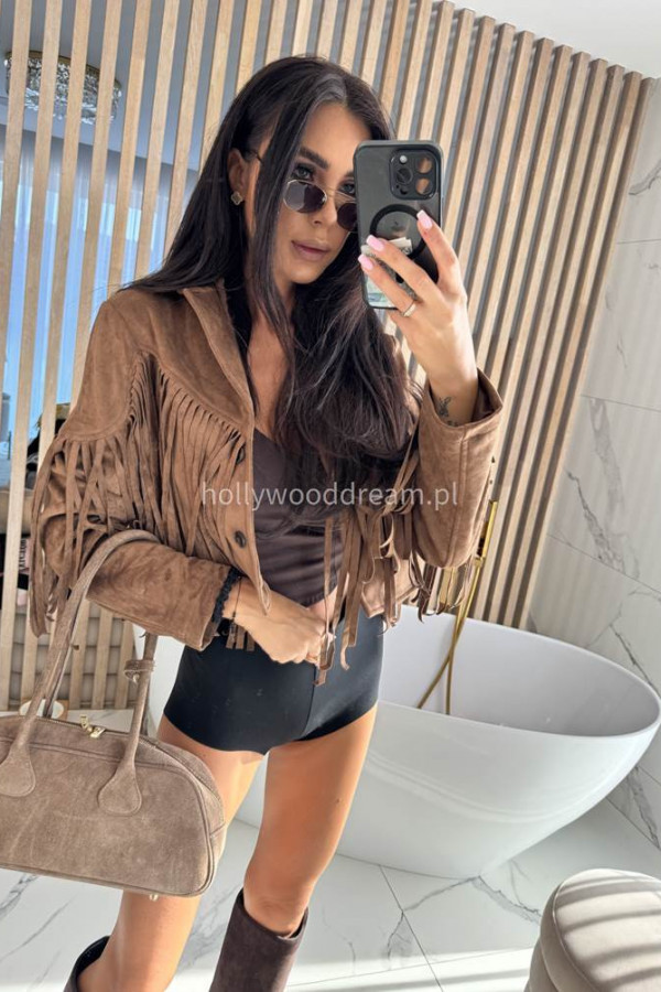 Kurtka zamszowa z frędzlami AGA jasno brązowa 06