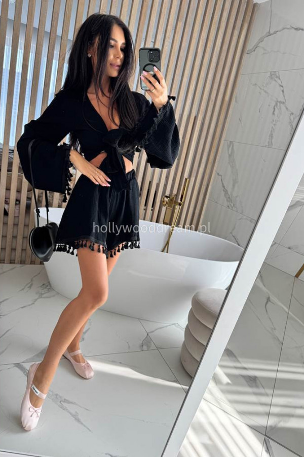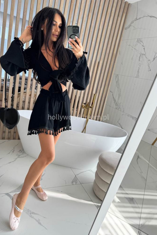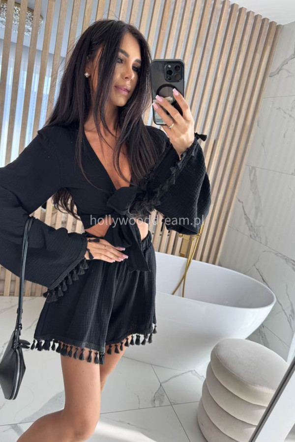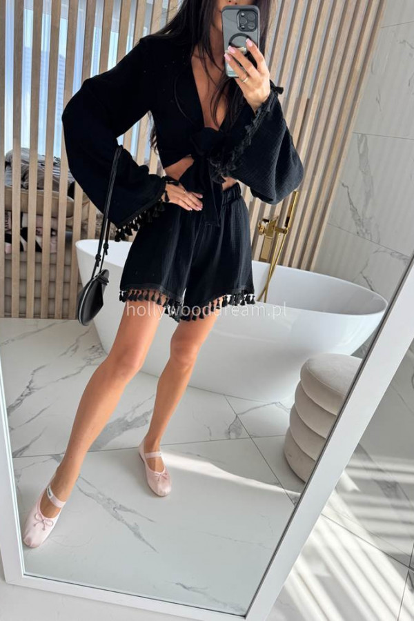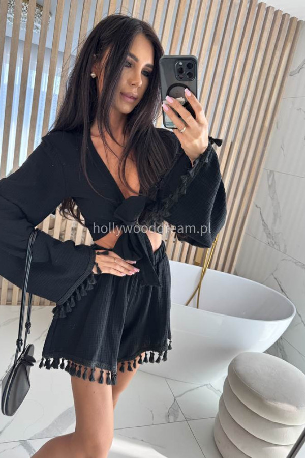 Komplet muślinowy z frędzelkami koszula+spodenki JORDAN czarny 173