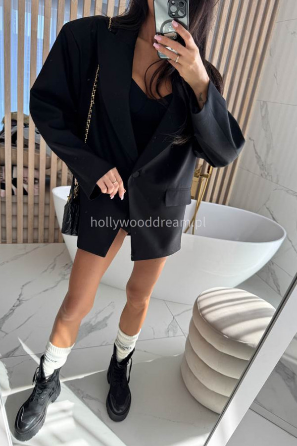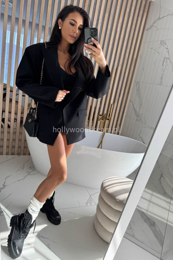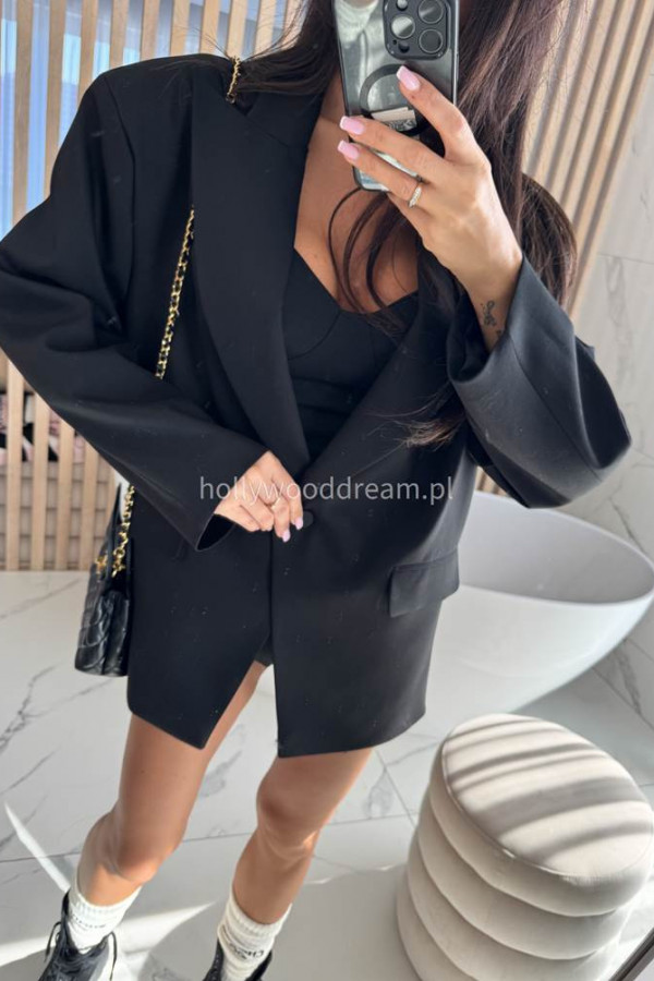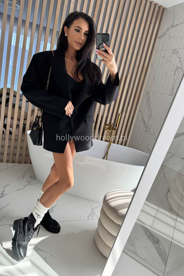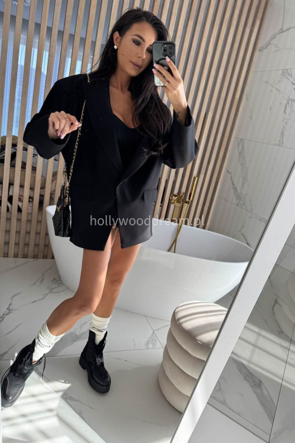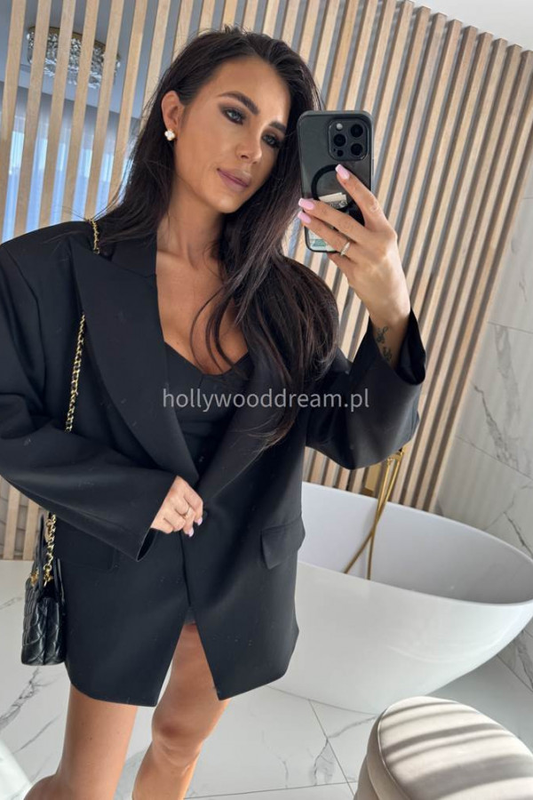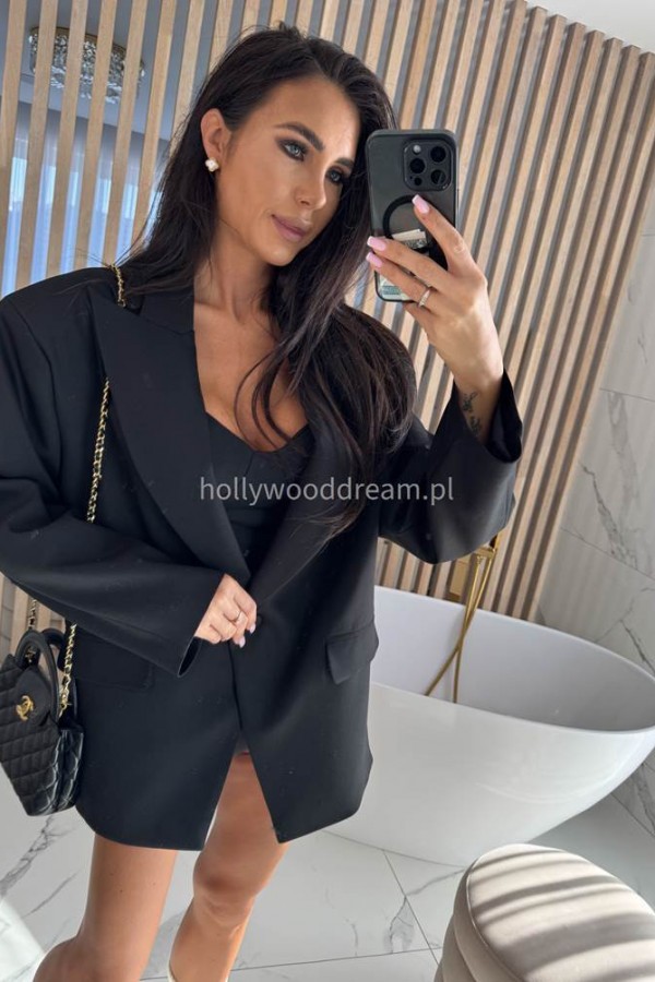 Marynarka na jeden guzik SOFIA czarna to elegancki i nowoczesny wybór dla kobiet, które pragną dodać swojej garderobie odrobinę luksusu. Wykonana z wysokiej jakości materiałów, marynarka świetnie układa się na sylwetce, podkreślając atuty figury. Zapięcie na jeden guzika nadaje jej klasyczny, a zarazem minimalistyczny charakter, idealny zarówno do biurowych stylizacji, jak i na wieczorne wyjścia. Marynarka w tym odcieniu wprowadza ciepło i wyrafinowanie, sprawiając, że marynarka wyróżnia się wśród innych elementów garderoby. Połącz ją z dopasowanymi spodniami lub spódnicą, aby stworzyć efektowny i elegancki look na każdą okazję! Model dostępny w rozmiarze uniwersalnym.
