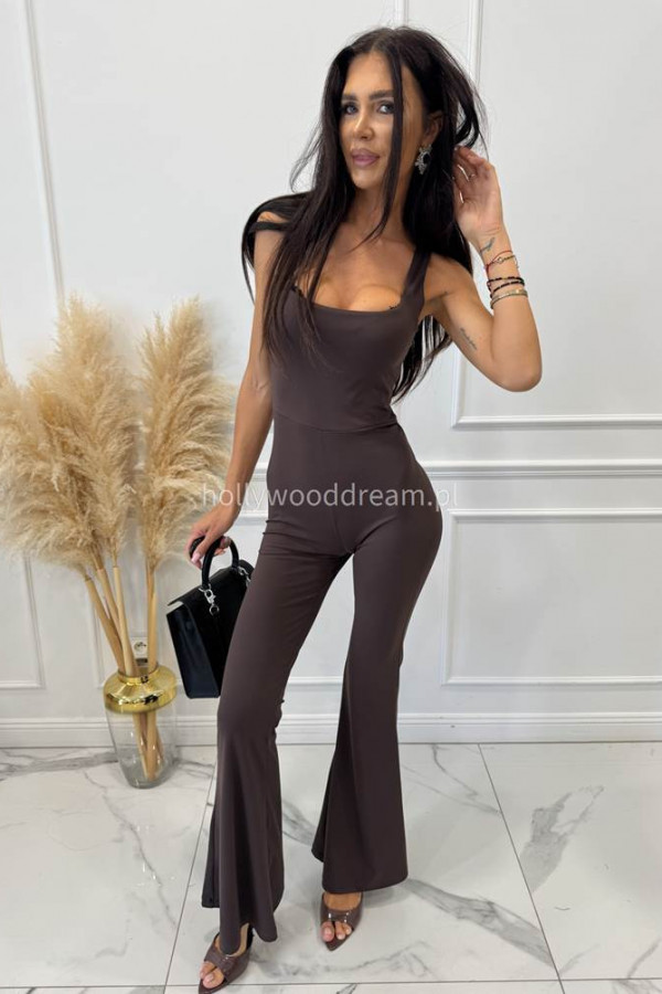 Kombinezon z dekoltem karo na ramiączkach GREGOR czekoladowy 171