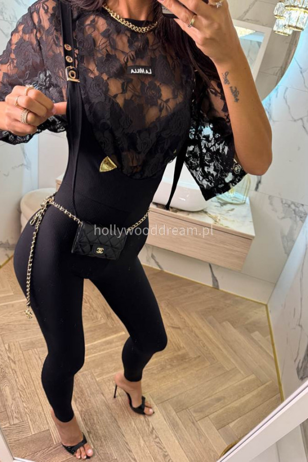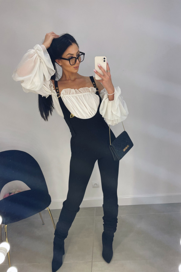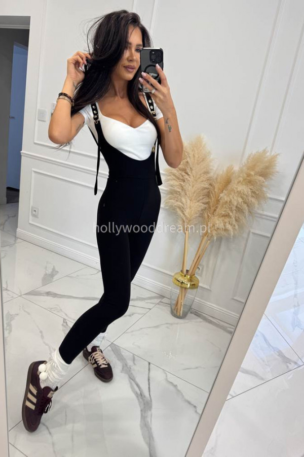 Ogrodniczki długie prążkowane BENNY czarne 155