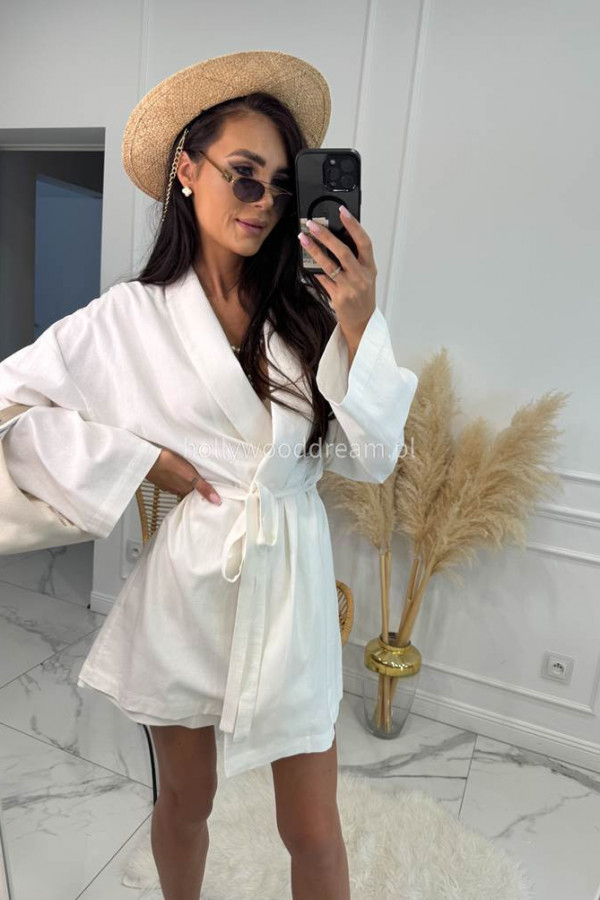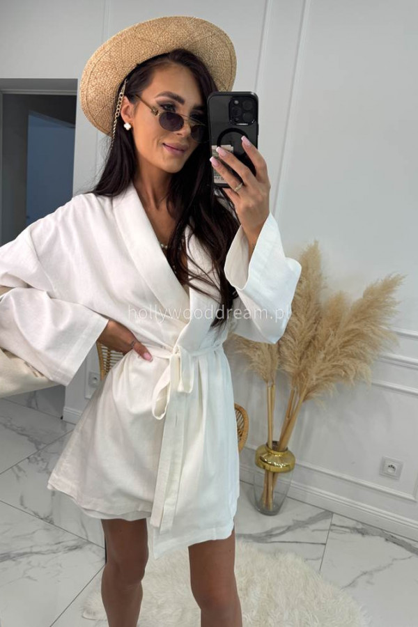 - Komplet kimono z paskiem+ spodenki z lnem, wiskozą i bawełną PATRYK biały
