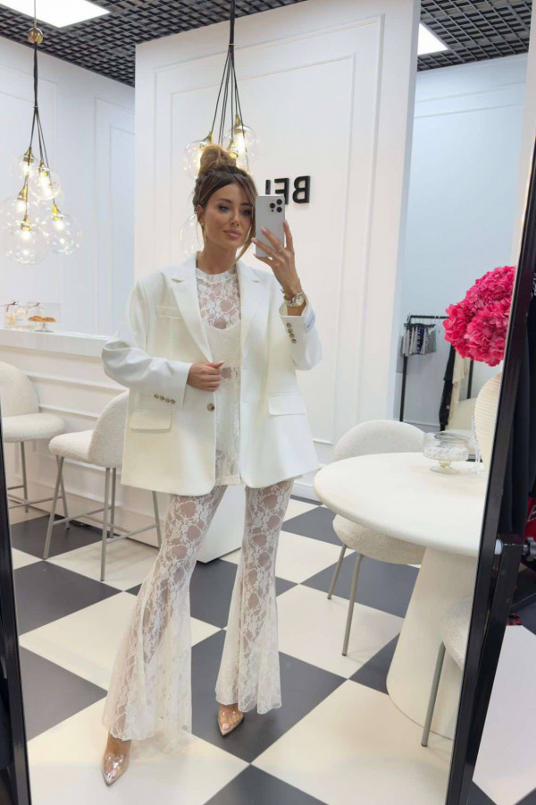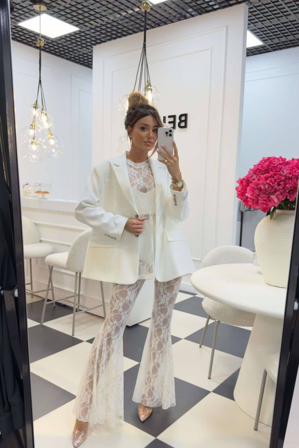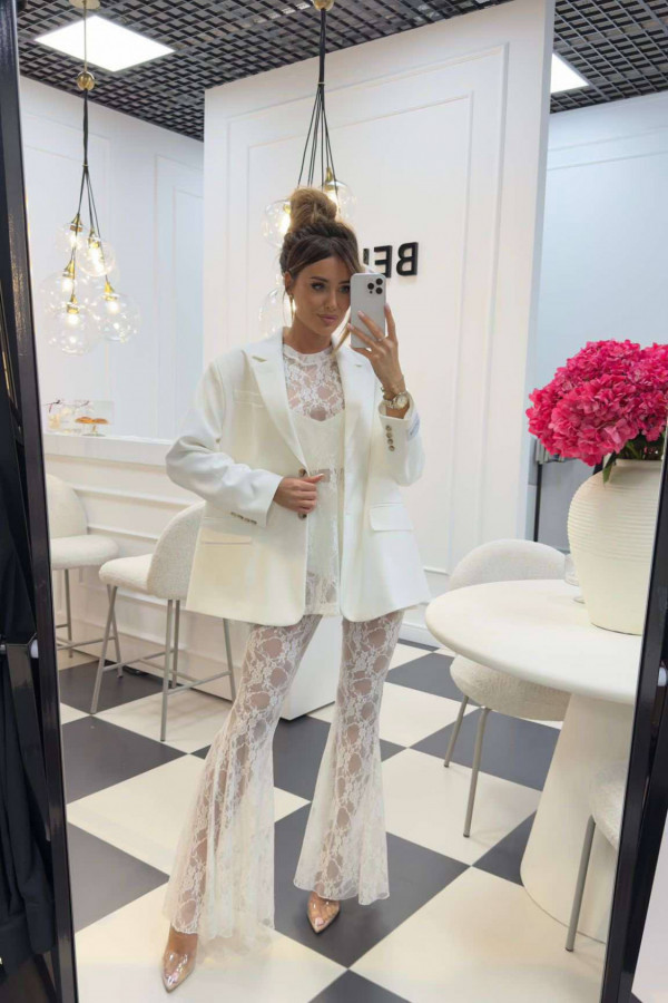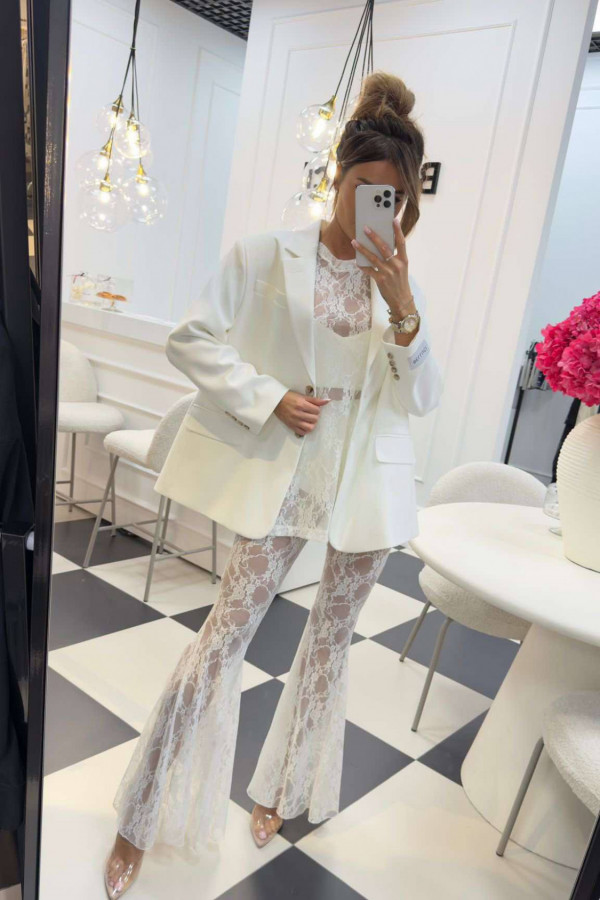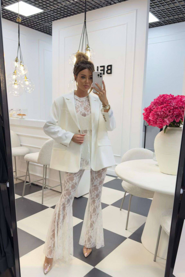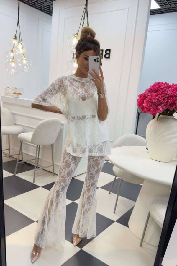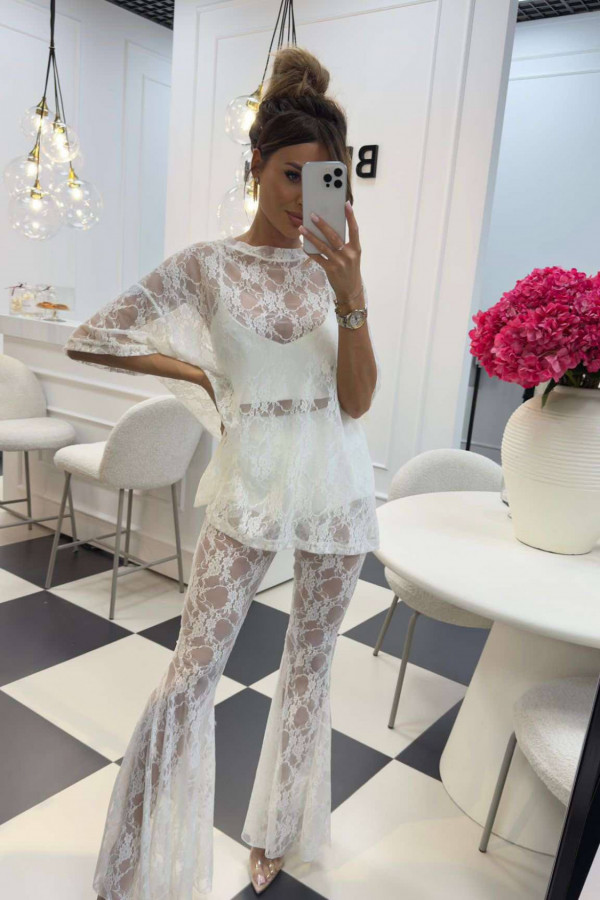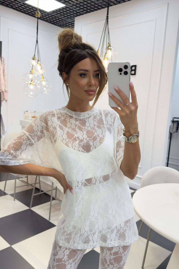 Bluzka koronkowa na krótki rękaw z topem KAROLA biała 161