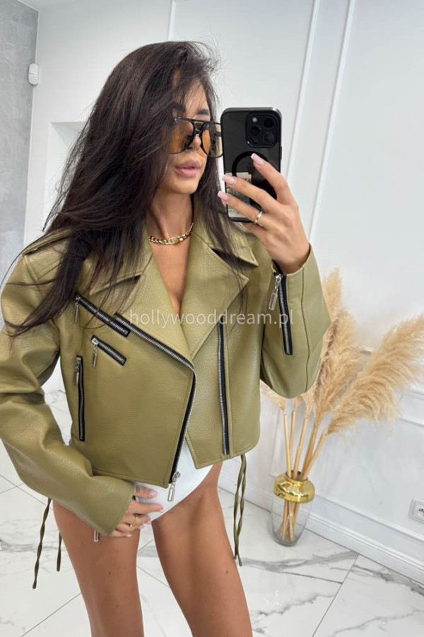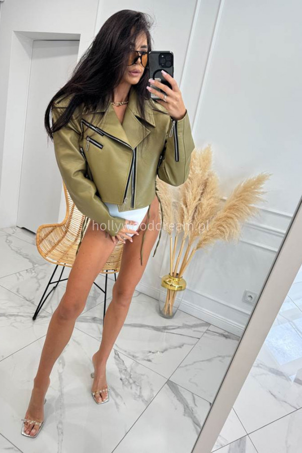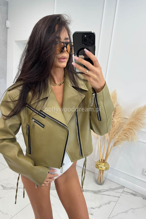 Kurtka ramoneska skóra węża eko skóra LA MILLA zielona 25