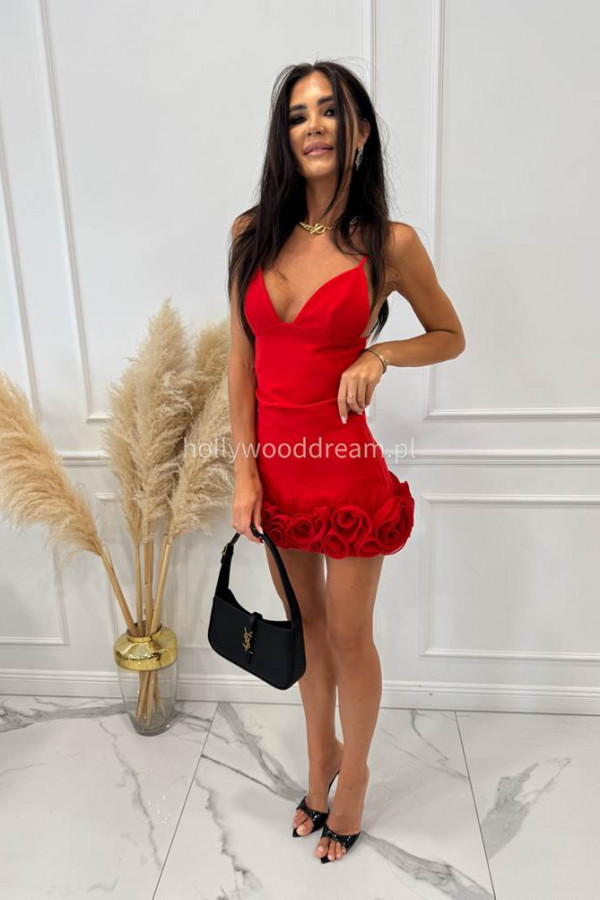 Sukienka mini na ramiączka z różami u dołu ROSE czerwona 89