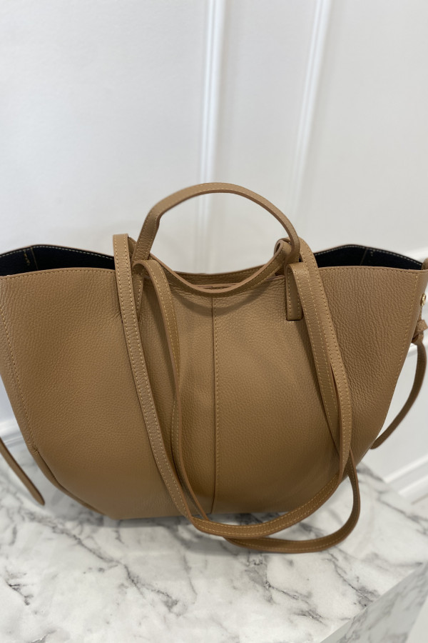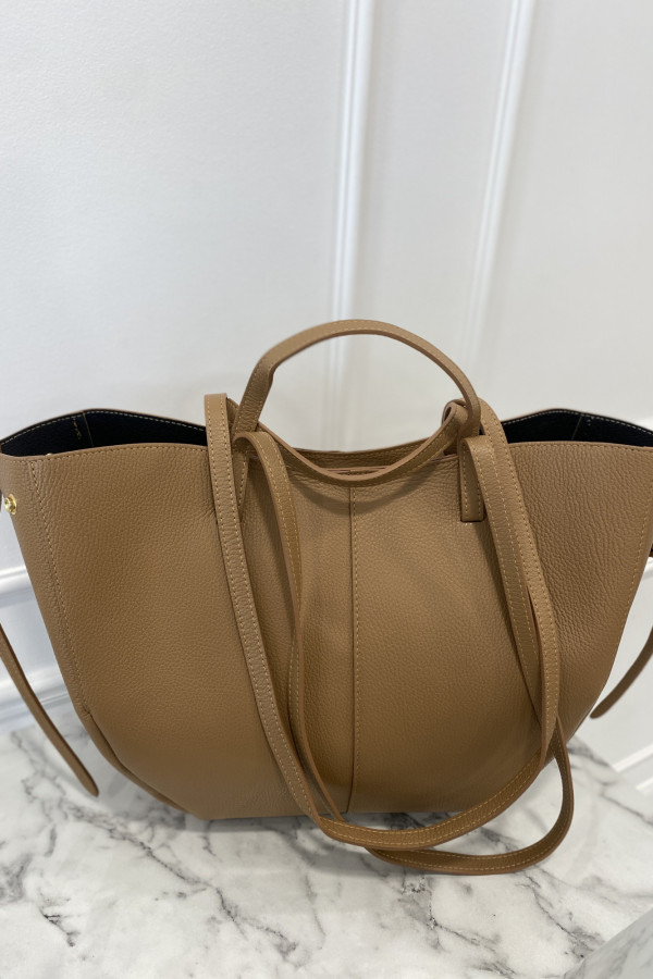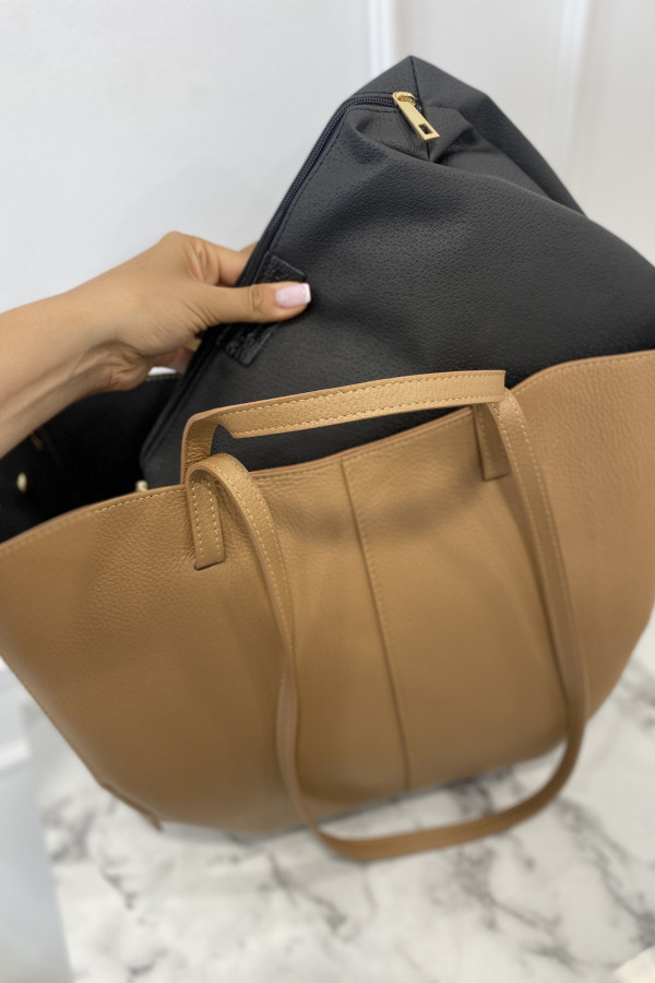 Torebka średnia shopper skórzana z wkładem GLAMOUR karmel