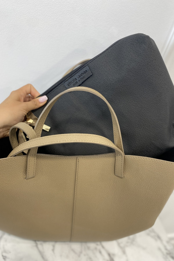 Torebka średnia shopper skórzana z wkładem GLAMOUR mokka