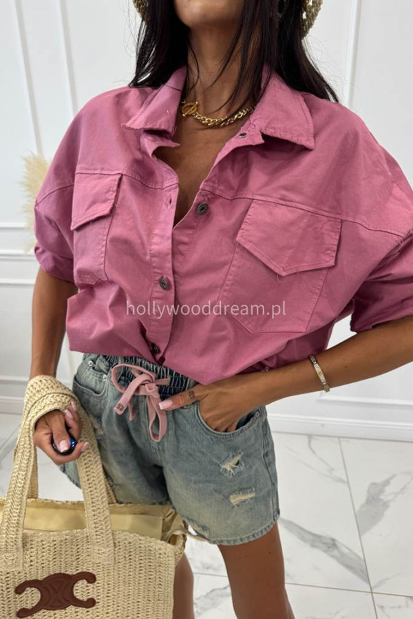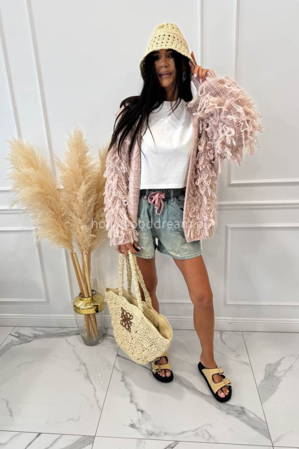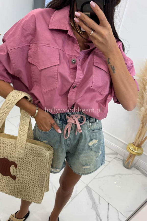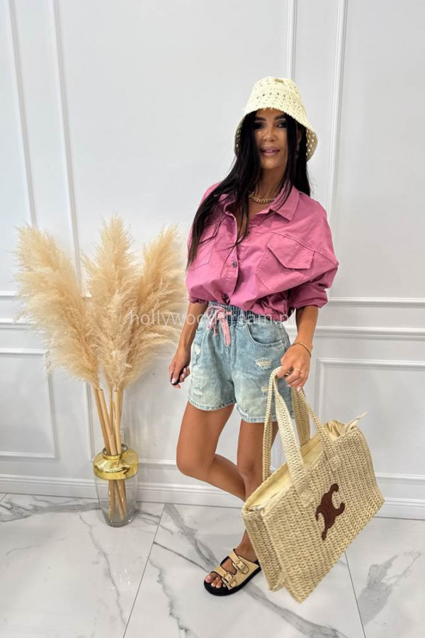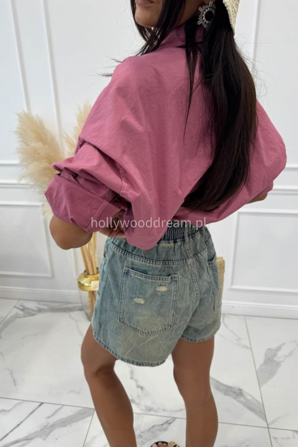 Spodenki jeans z gumką w pasie, różowym sznurkiem i przetarciami MIRO sprany jeans 06