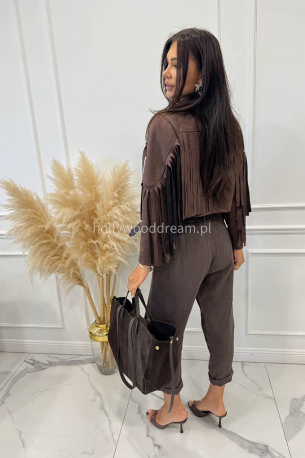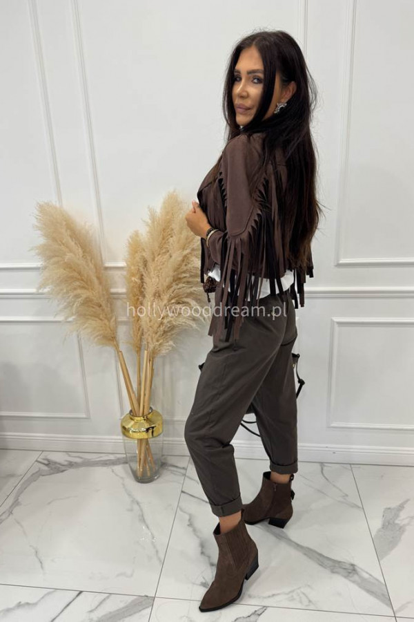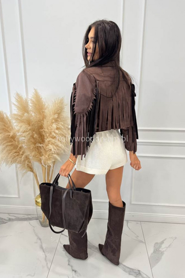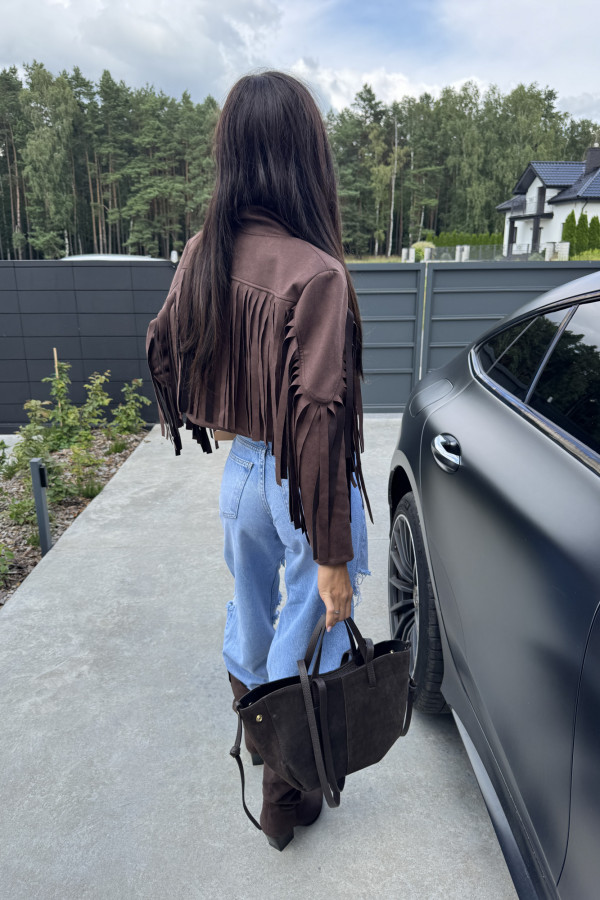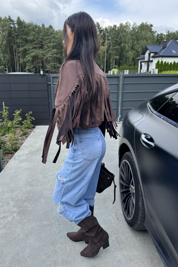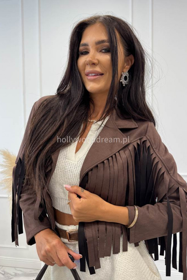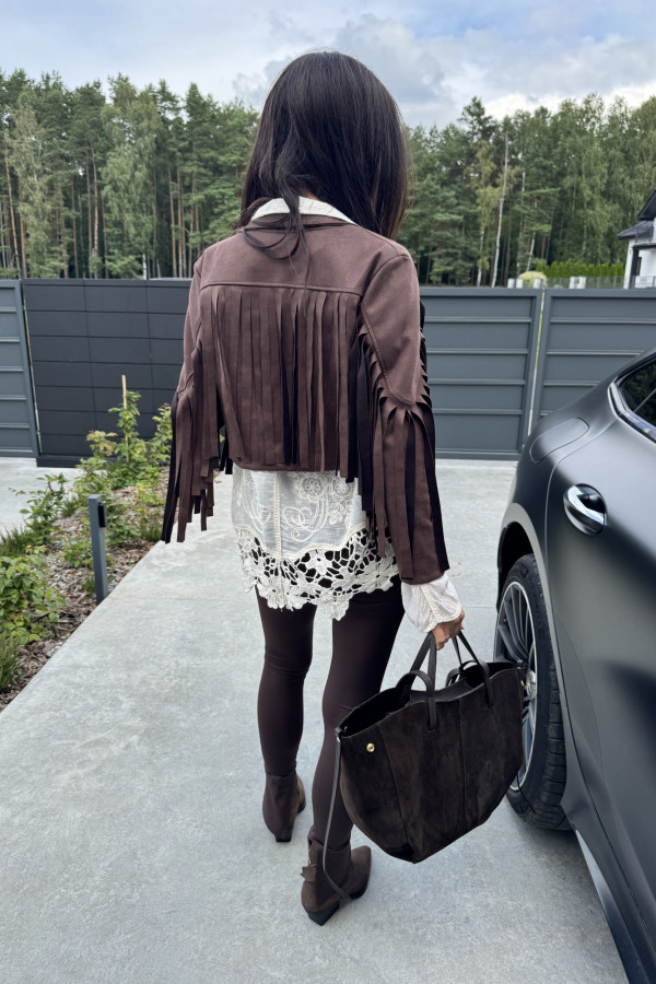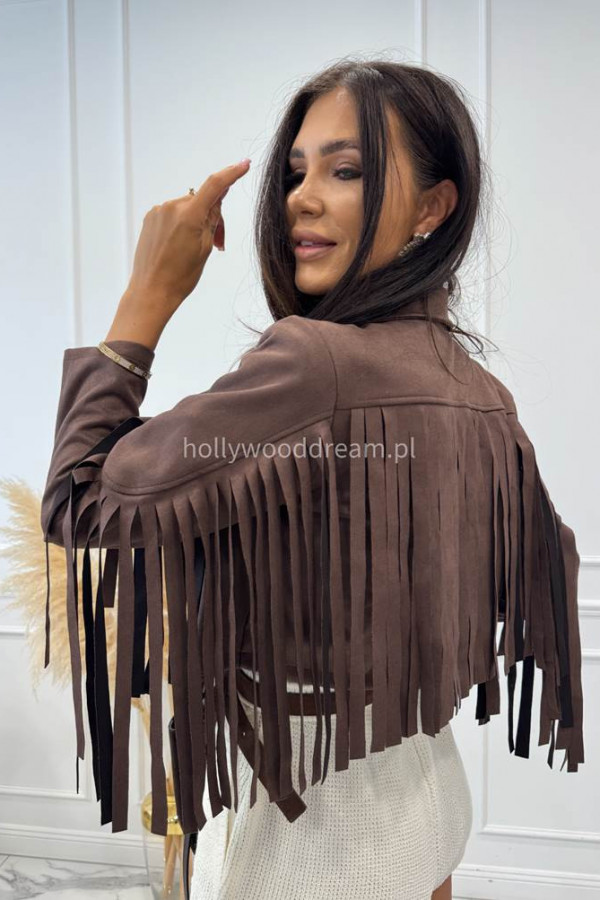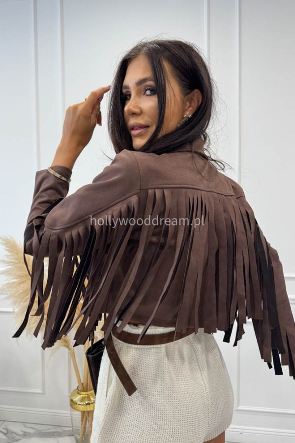 Kurtka zamszowa z frędzlami FRANJA brązowa 02,19