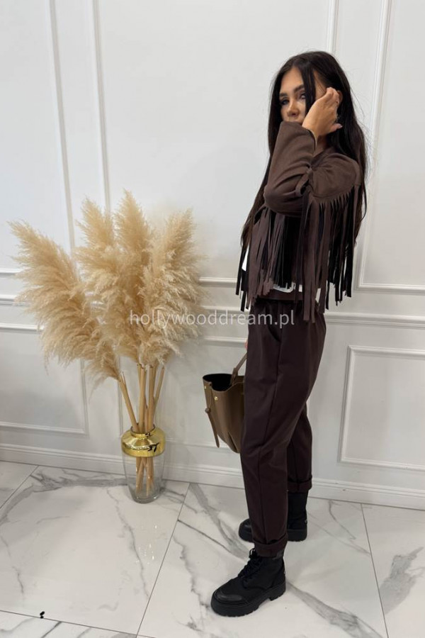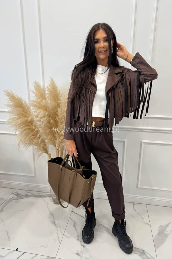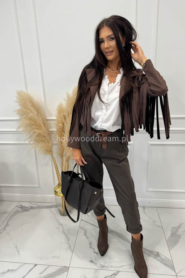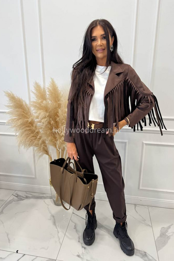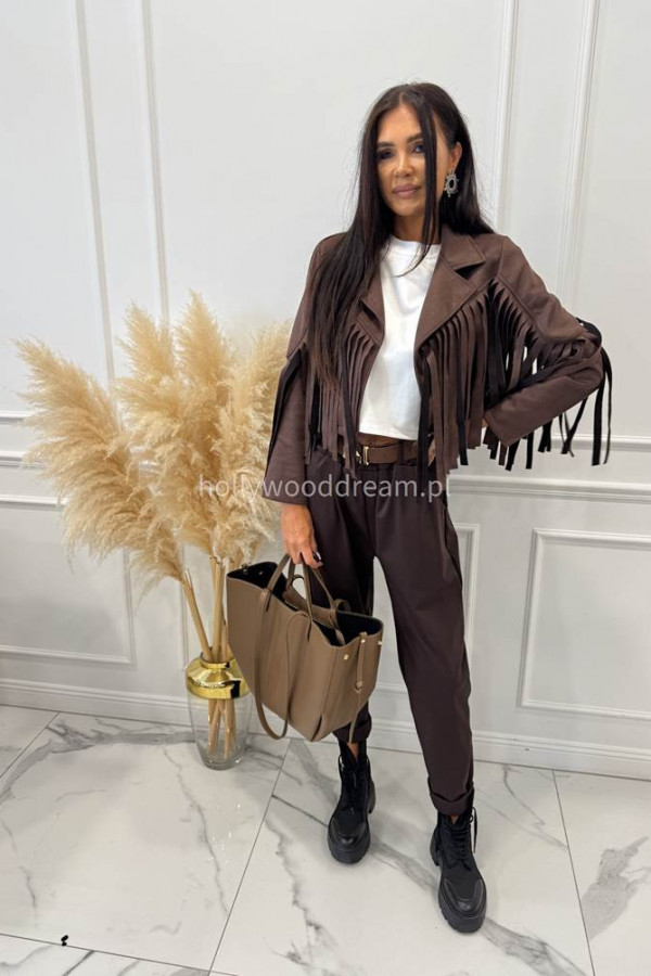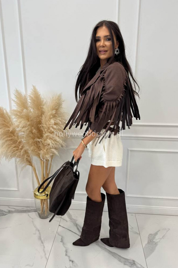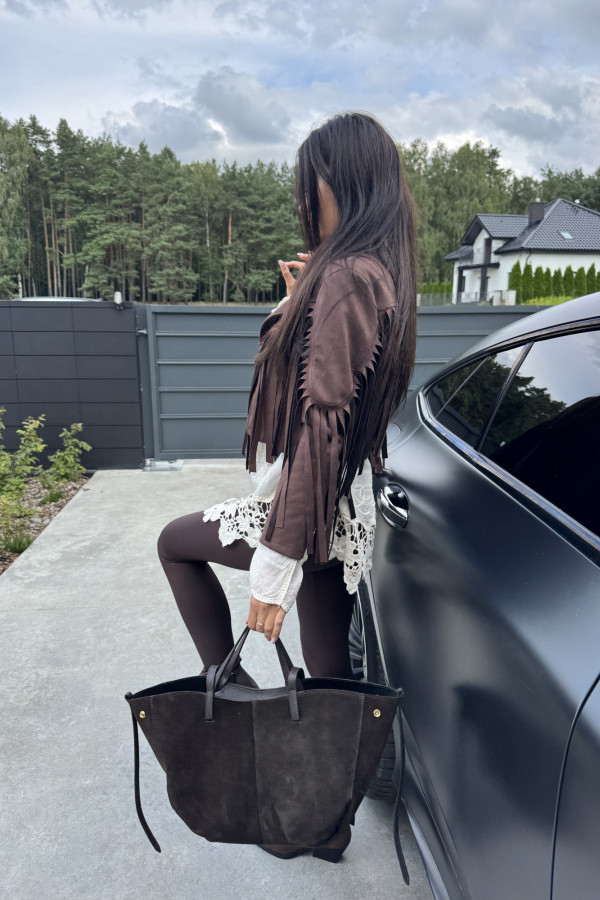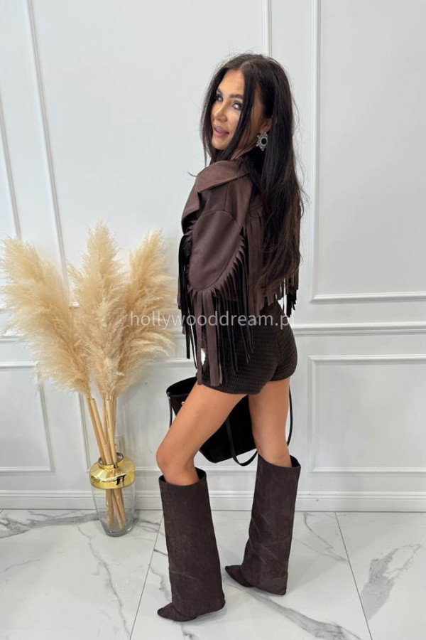 Kurtka zamszowa z frędzlami FRANJA brązowa 02,19